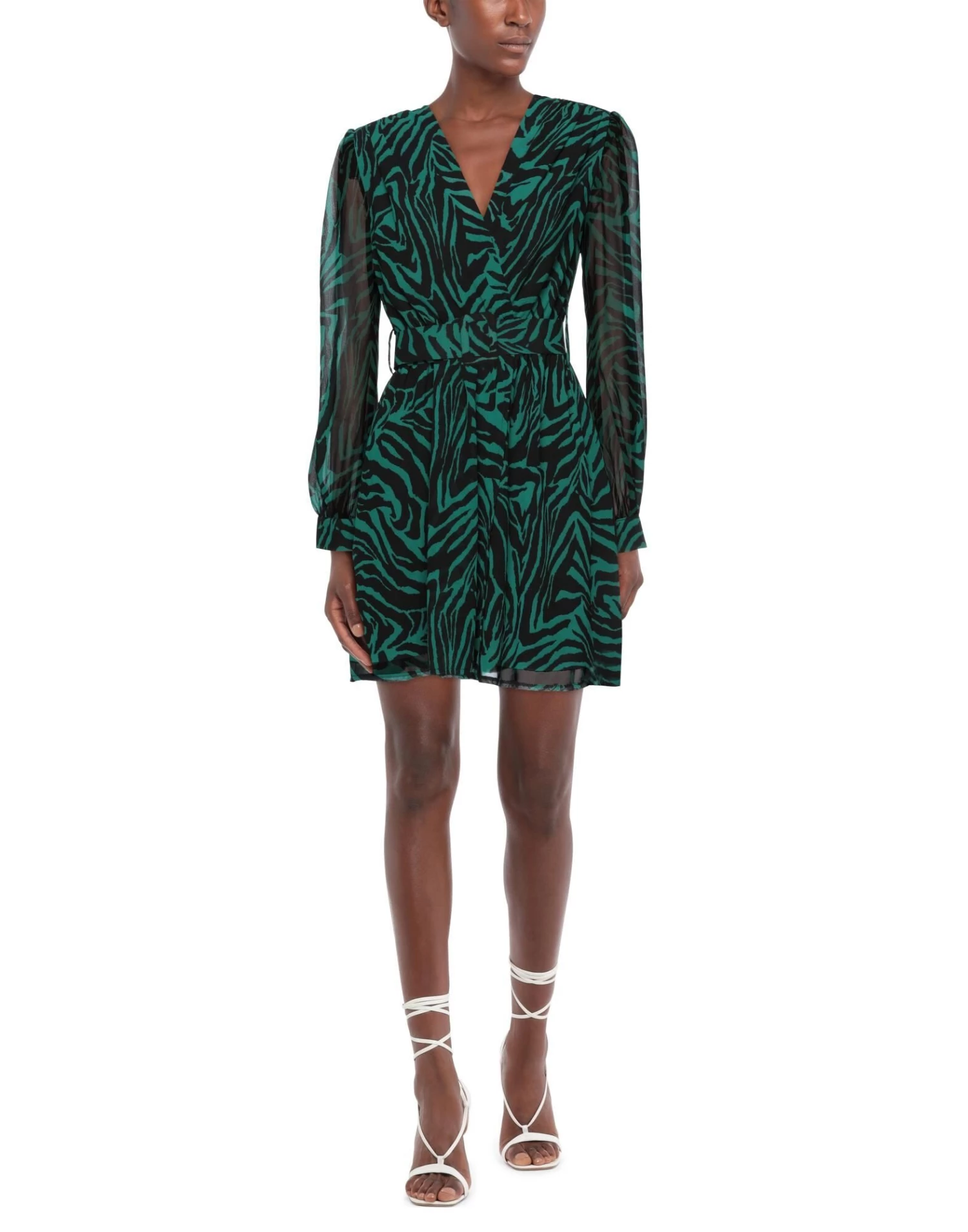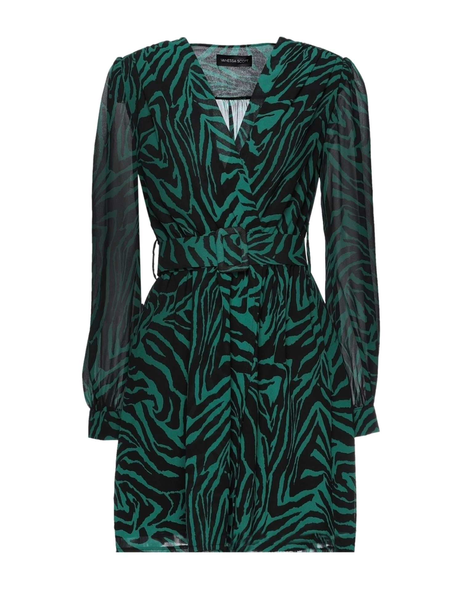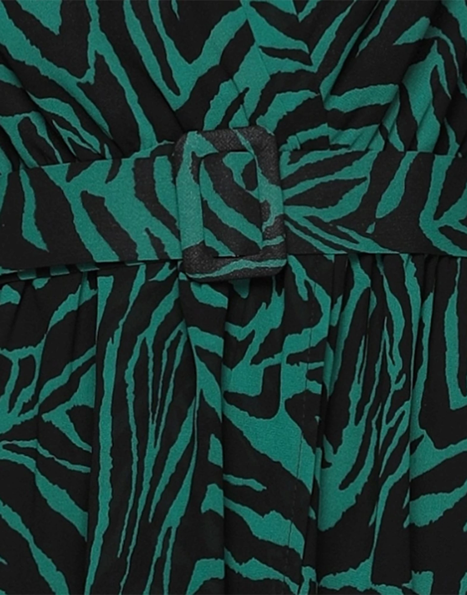 crepe, belt, zebra stripes, v-neck, long sleeves, buttoned cuffs, partially lined interior, with shoulder pad