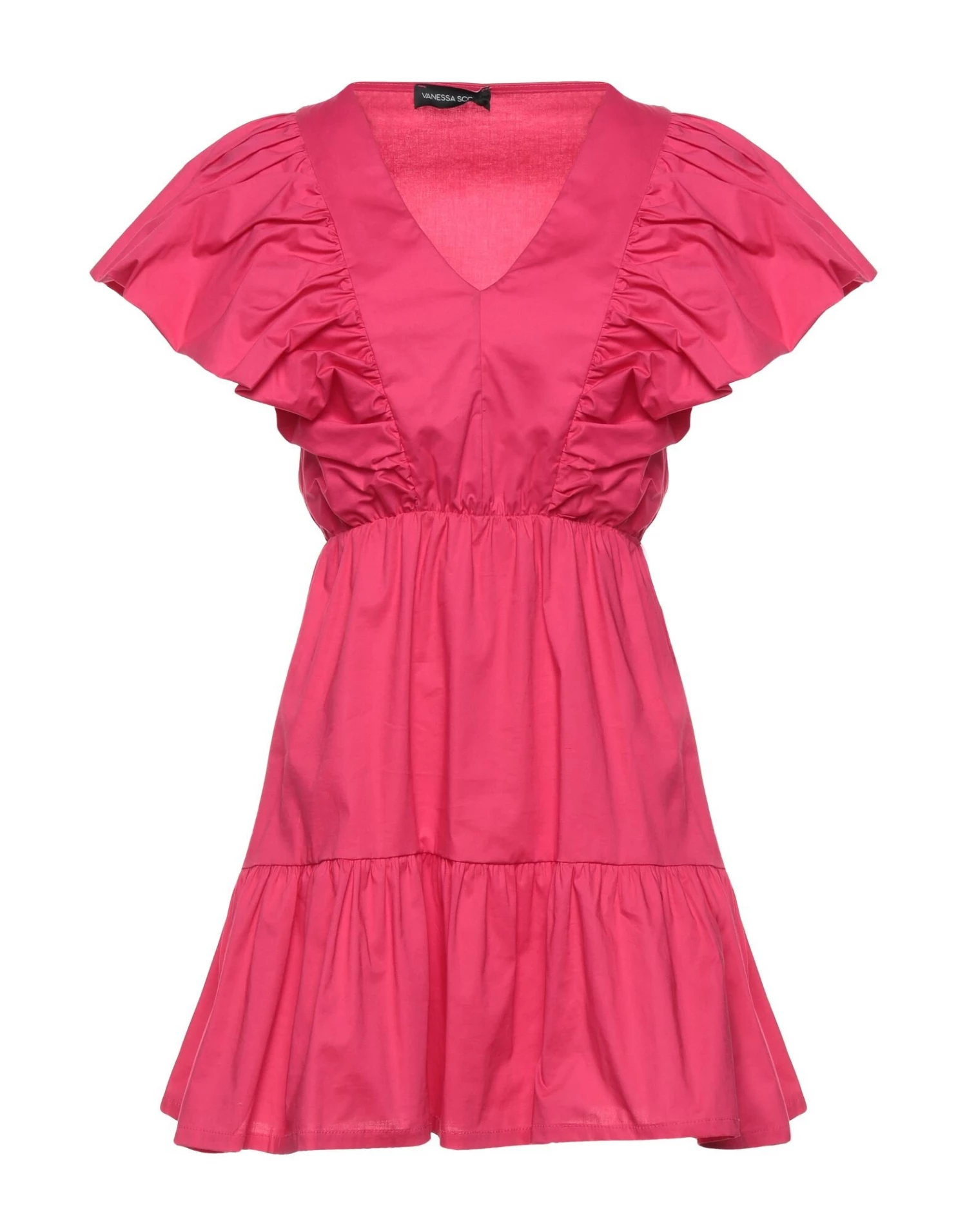 plain weave, frills, v-neck, short sleeves, solid color, partially lined interior, no pockets