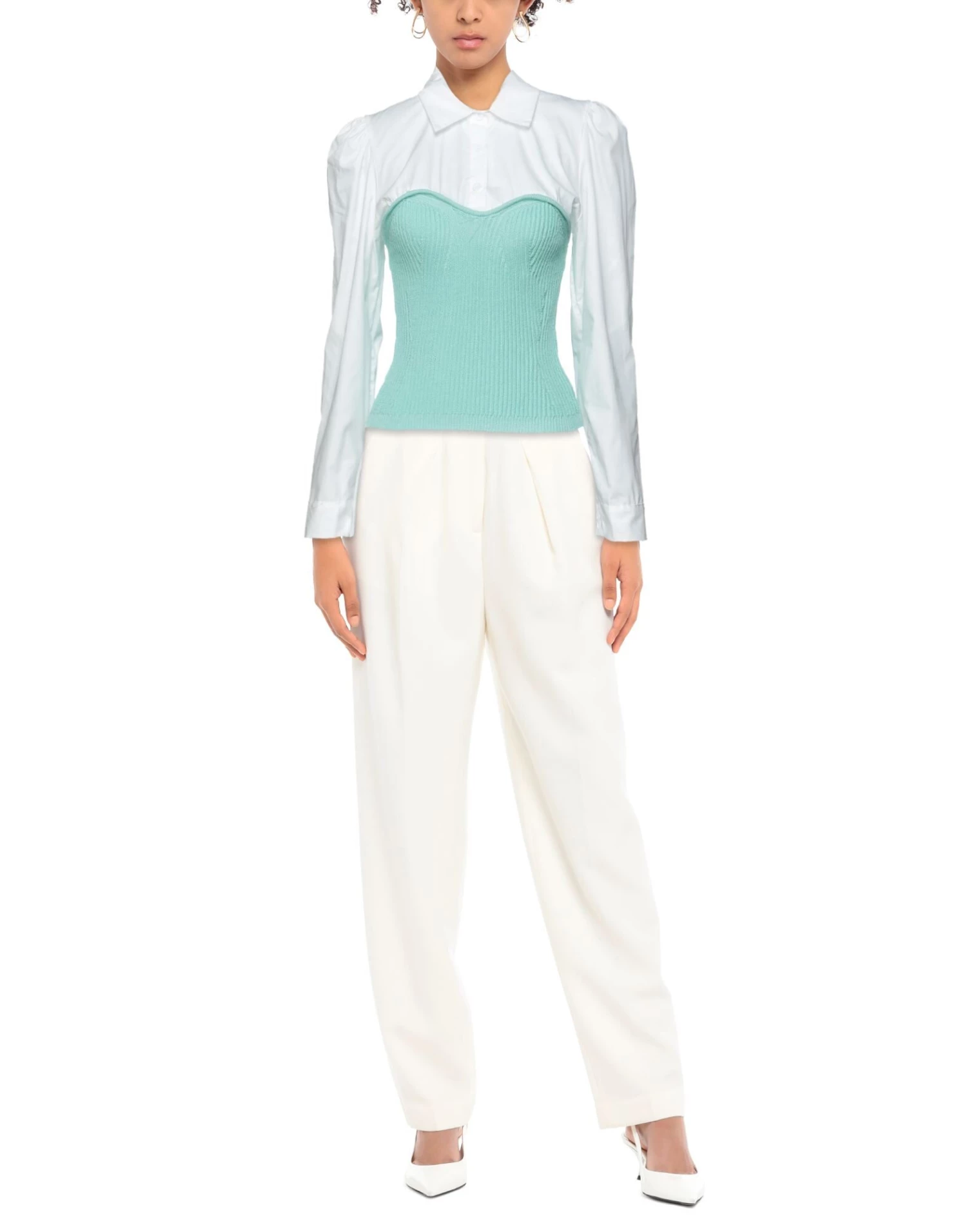 knitted, mélange, no appliqués, solid color, lightweight knit, round collar, long sleeves, no pockets, unlined