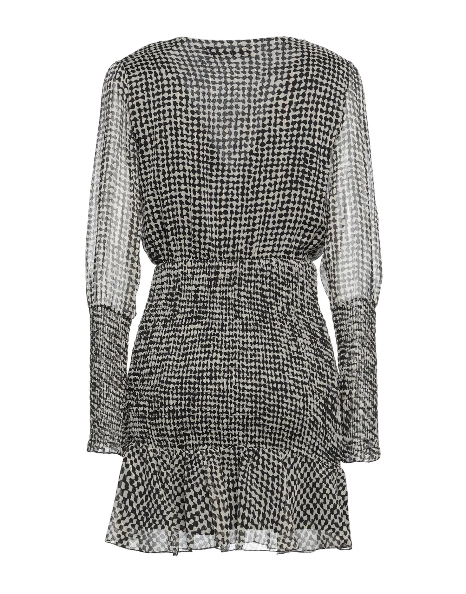 crepe, lamé, no appliqués, multicolor pattern, v-neck, long sleeves, fully lined, no pockets