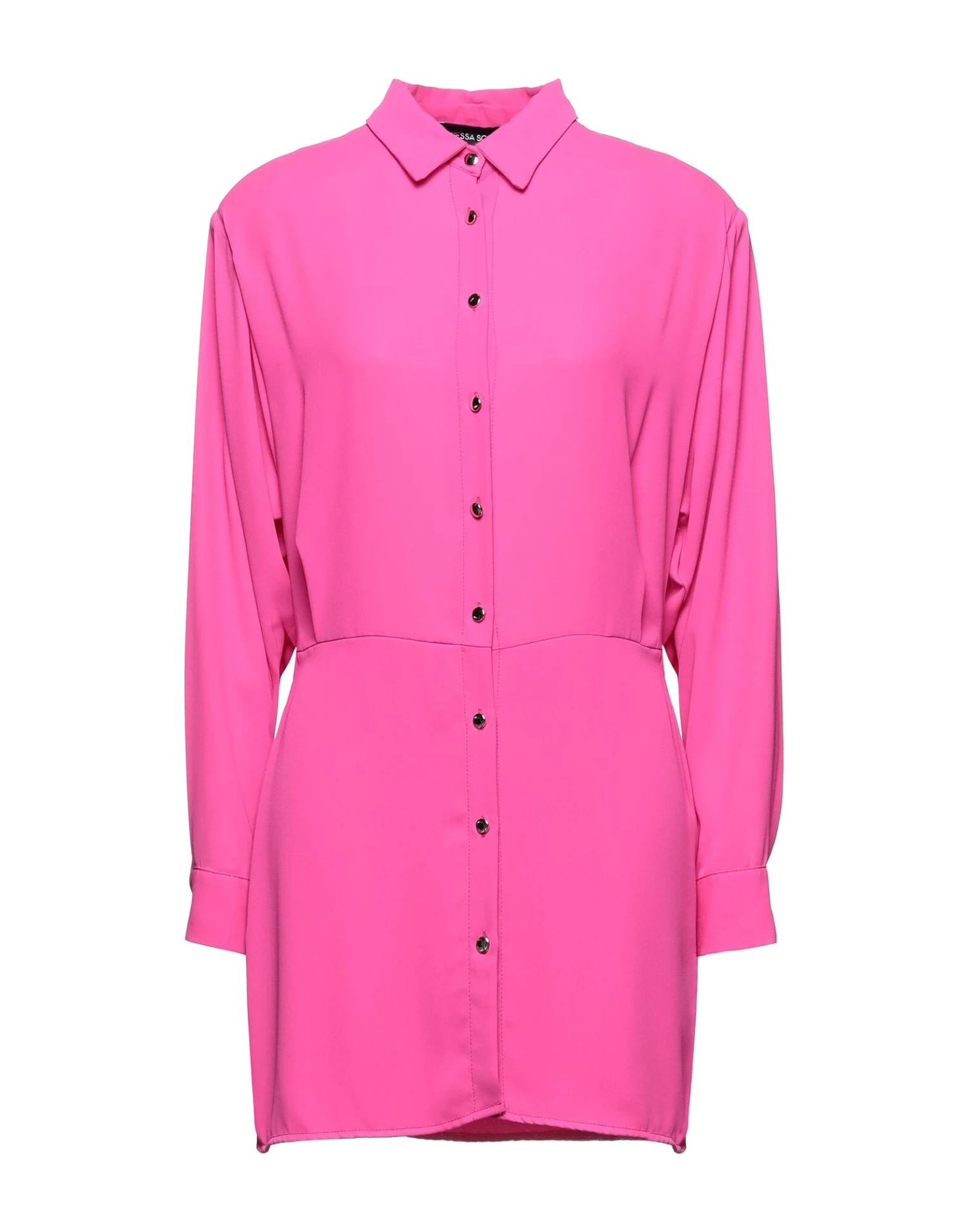crepe, no appliqués, solid color, classic neckline, long sleeves, buttoned cuffs, no pockets, button closing, unlined, with shoulder pad