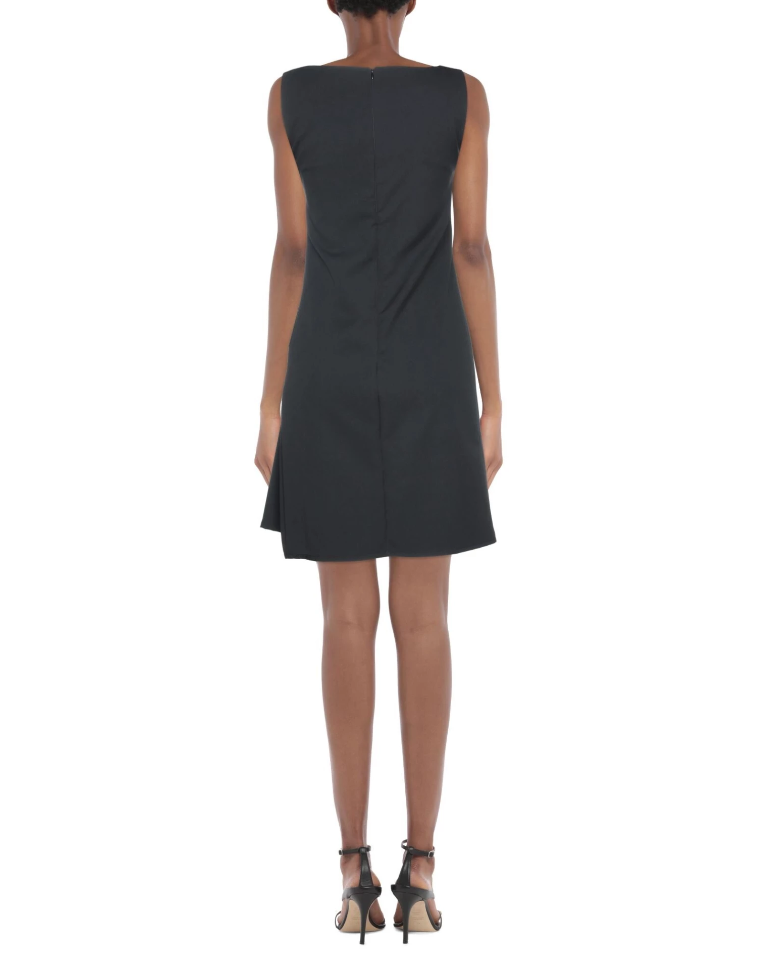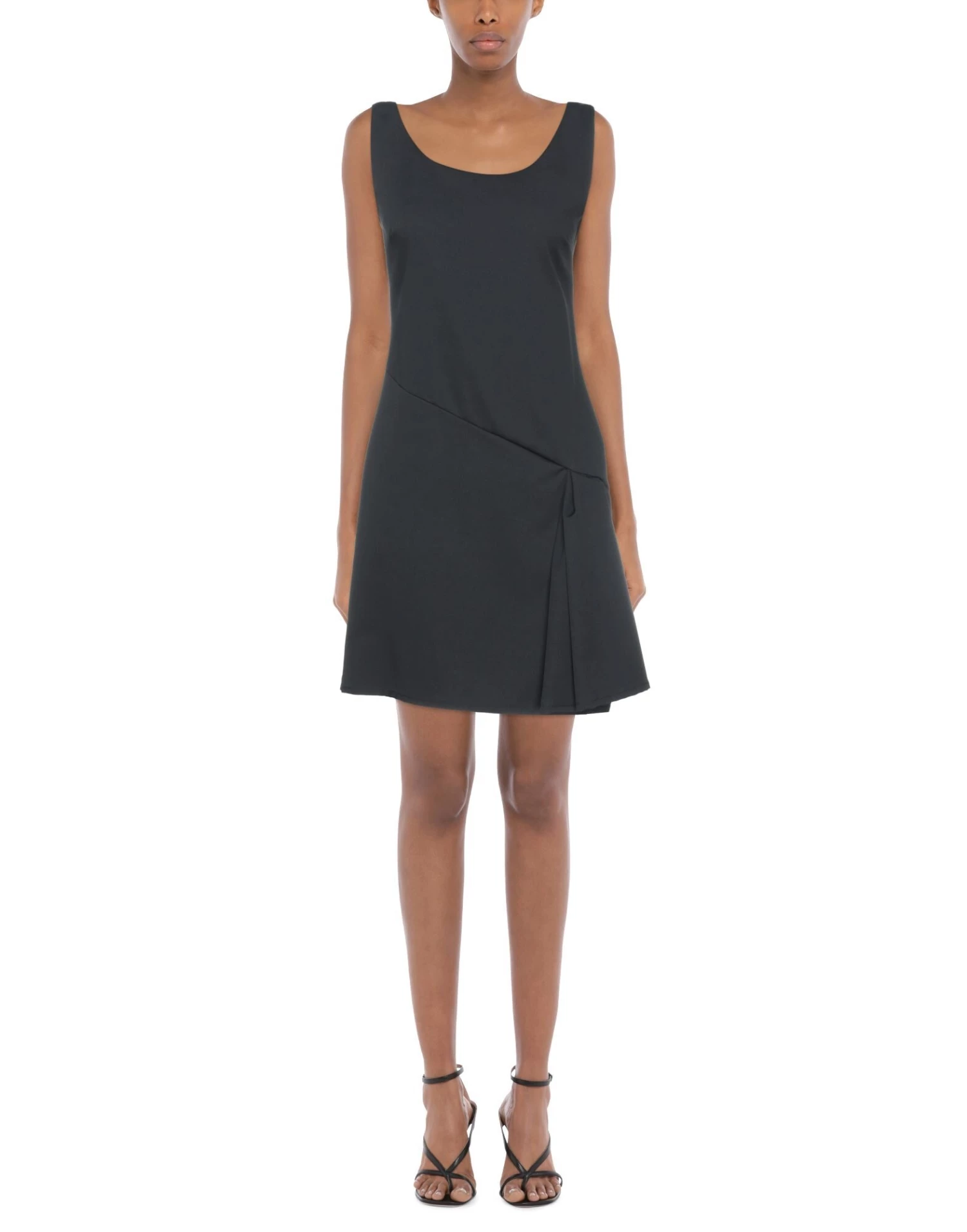 crepe, draped detailing, solid color, round collar, sleeveless, fully lined, zipper closure, no pockets, stretch