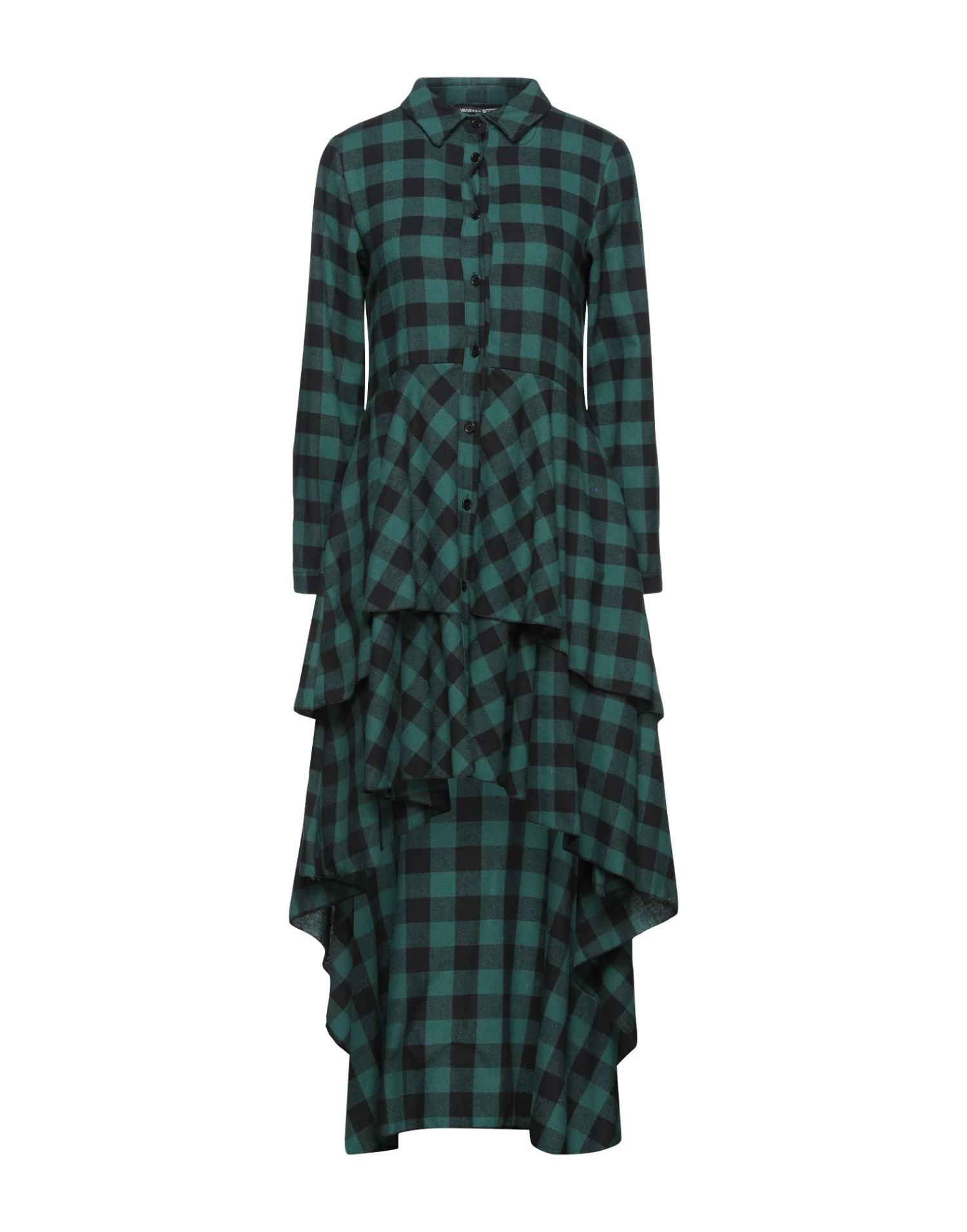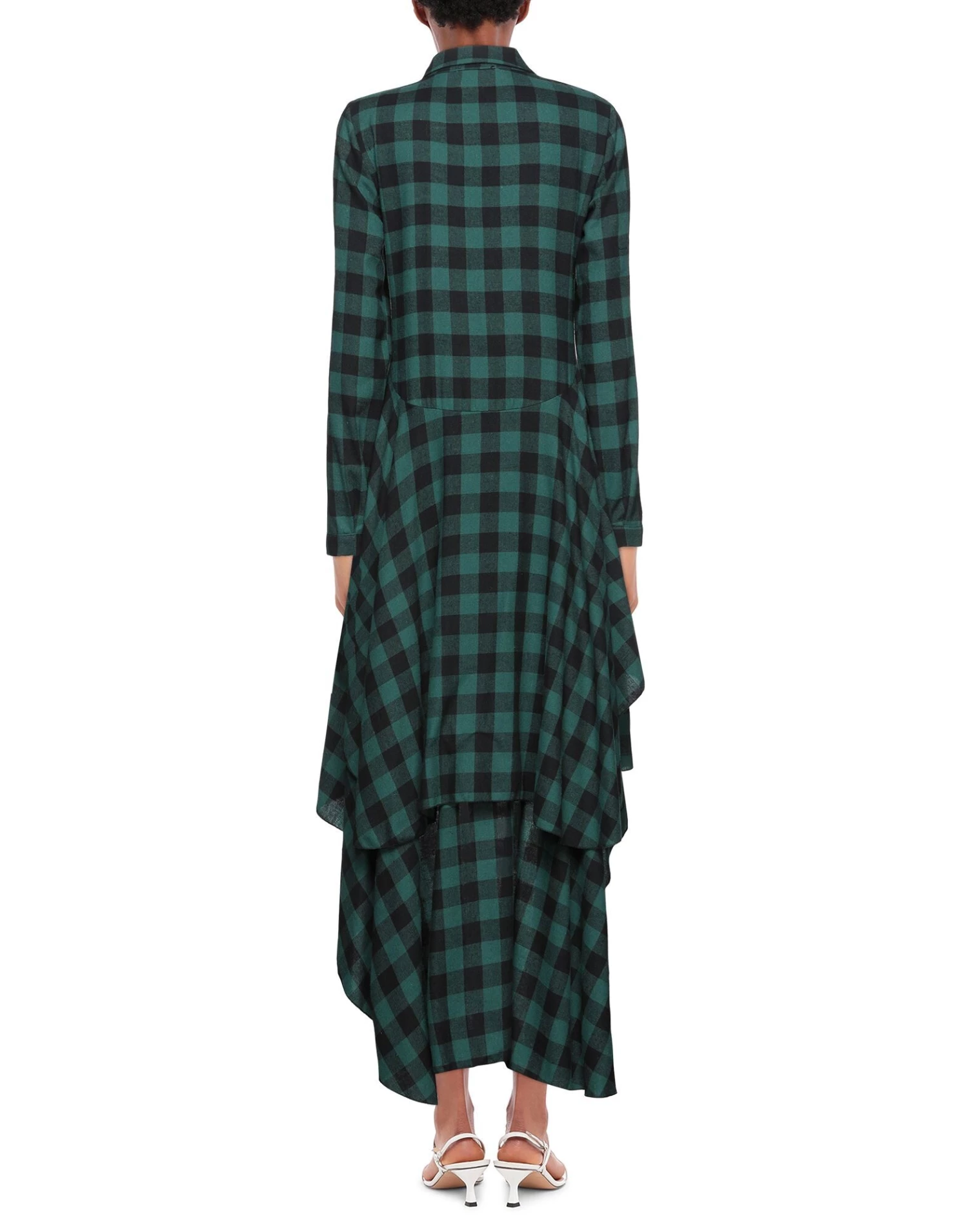 flannel, no appliqués, ruffles, classic neckline, checked, long sleeves, buttoned cuffs, unlined, button closing, no pockets, asymmetrical hemline