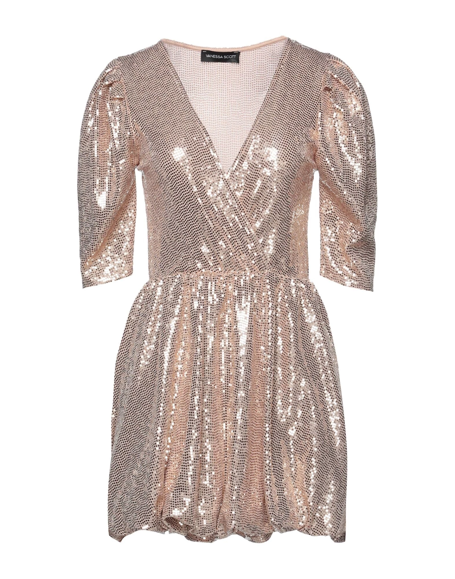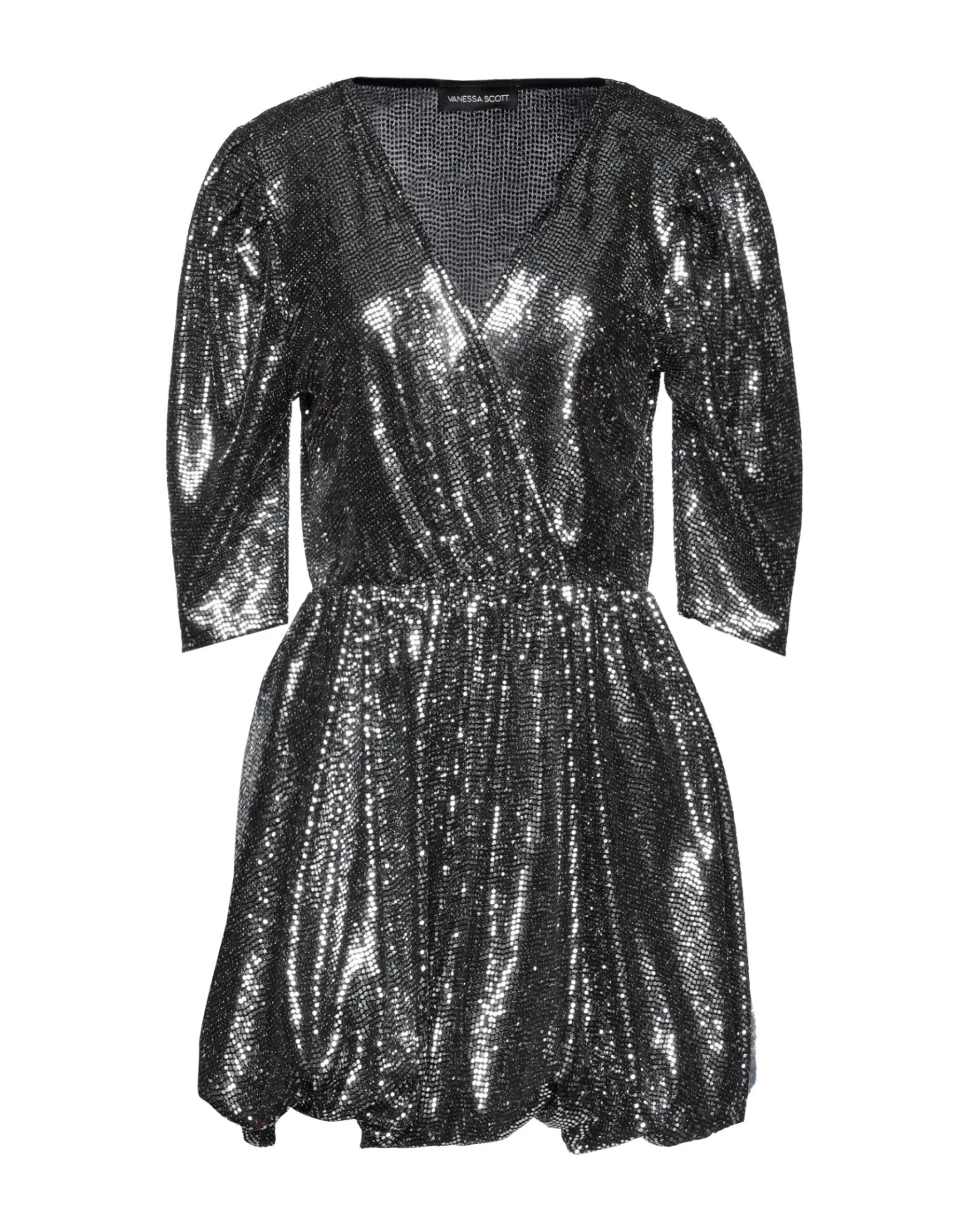 jersey, sequins, lamé, solid colour with appliqués, v-neck, short sleeves, fully lined, no pockets, stretch