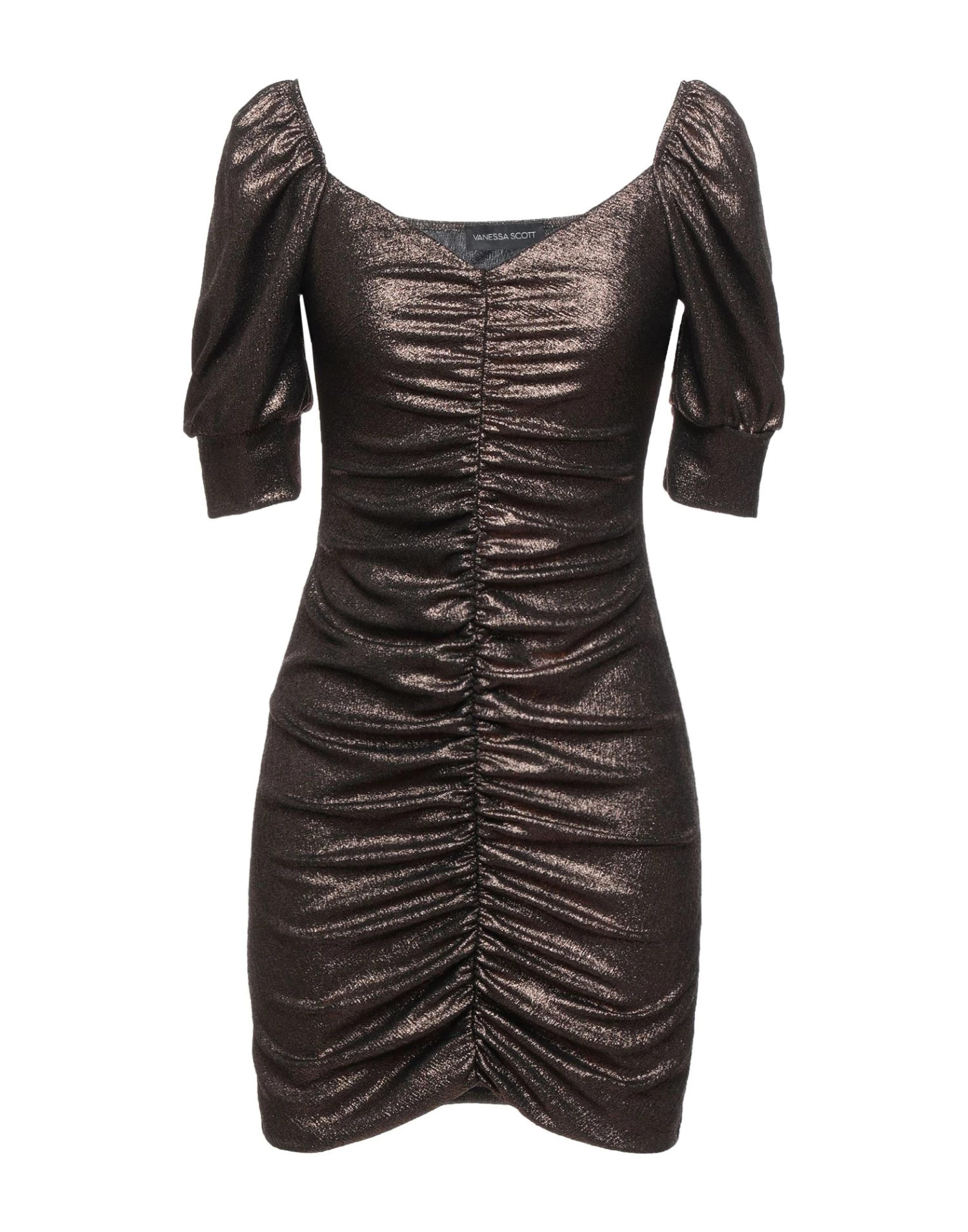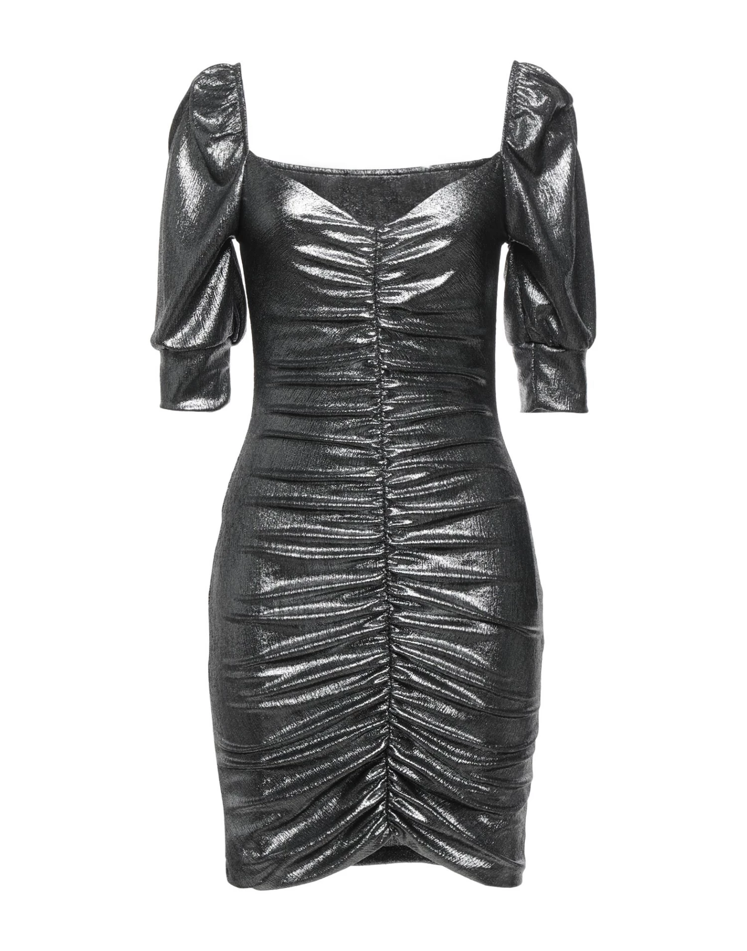 knitted, laminated effect, solid color, draped detailing, deep neckline, short sleeves, no pockets, no fastening, semi-lined, stretch