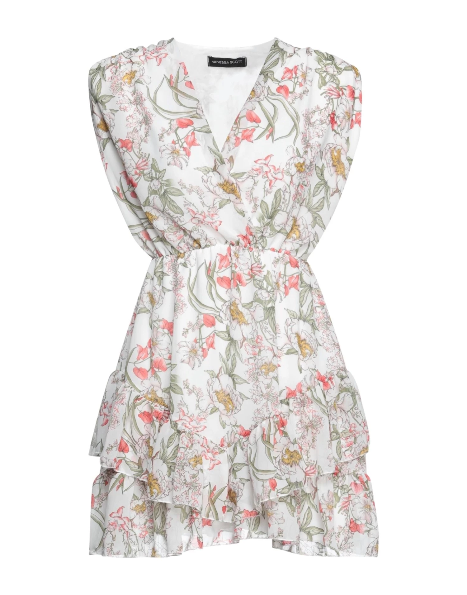 crepe, no appliqués, floral design, v-neck, sleeveless, fully lined, no pockets