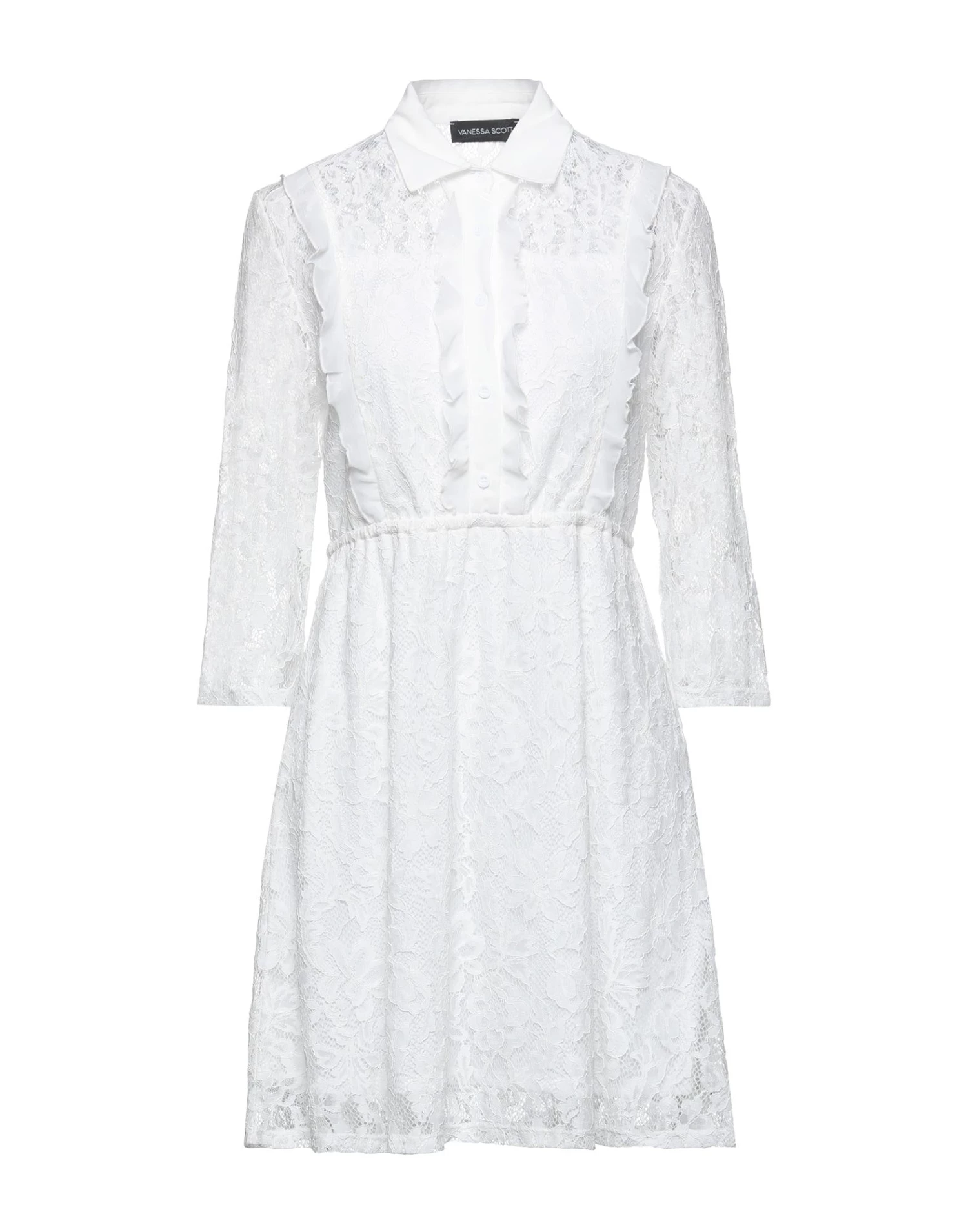 lace, crepe, ruffles, solid color, classic neckline, 3/4 length sleeves, no pockets, button closing, partially lined interior, stretch