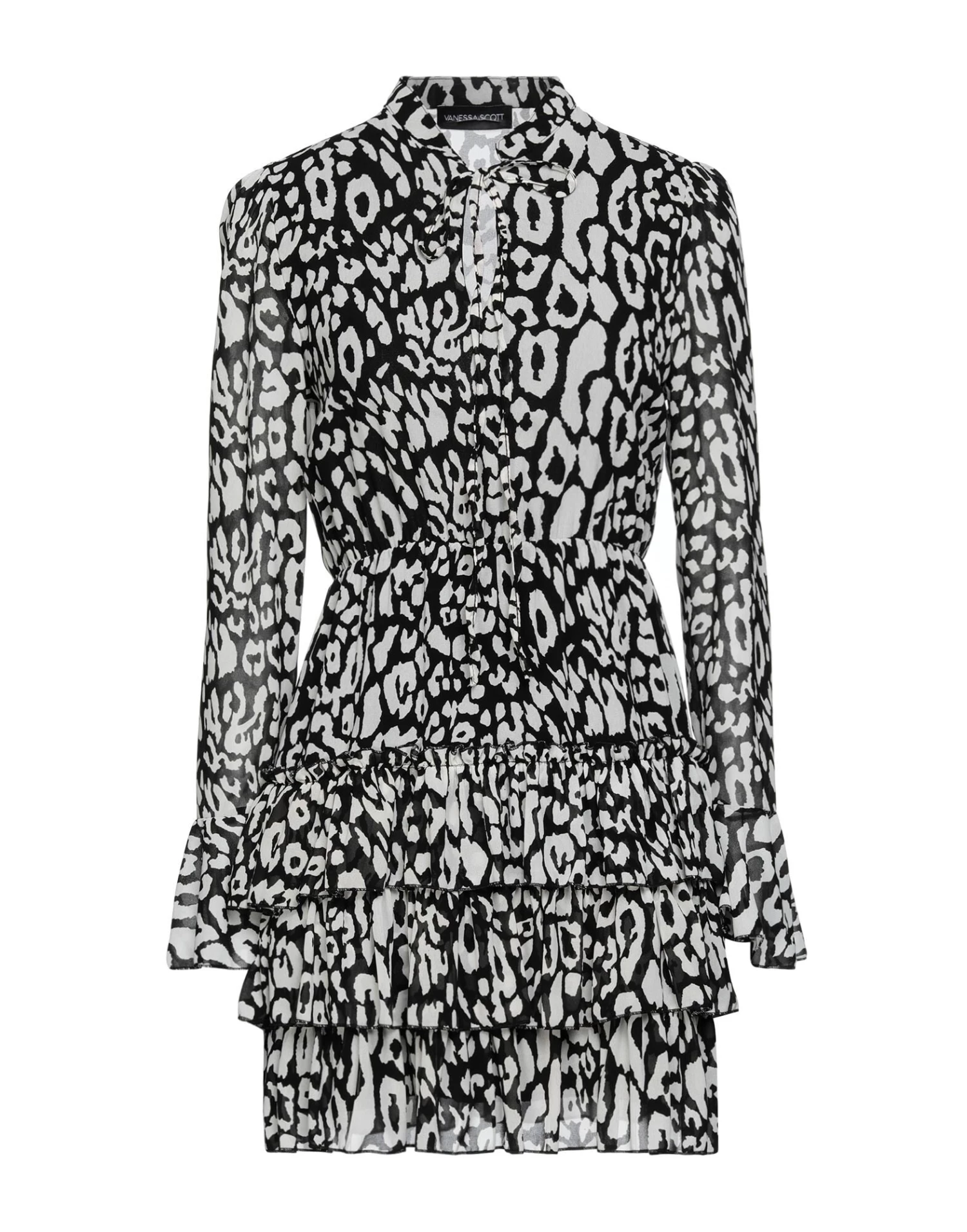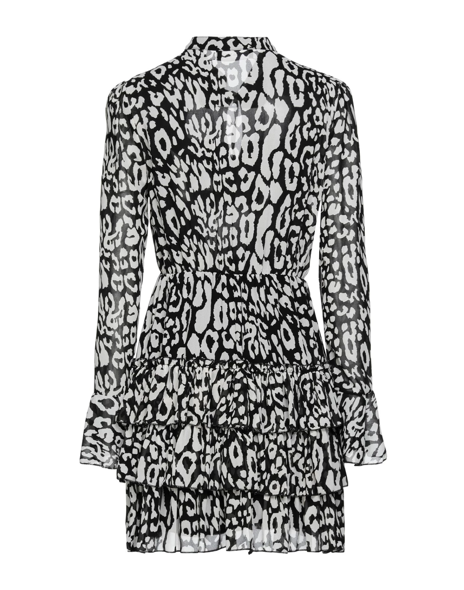 crepe, frills, ruffles, leopard-print, bow collar, long sleeves, cuffs with elastic, no pockets, partially lined interior