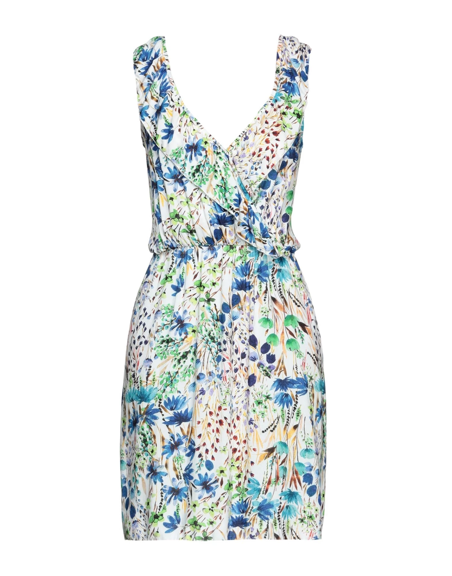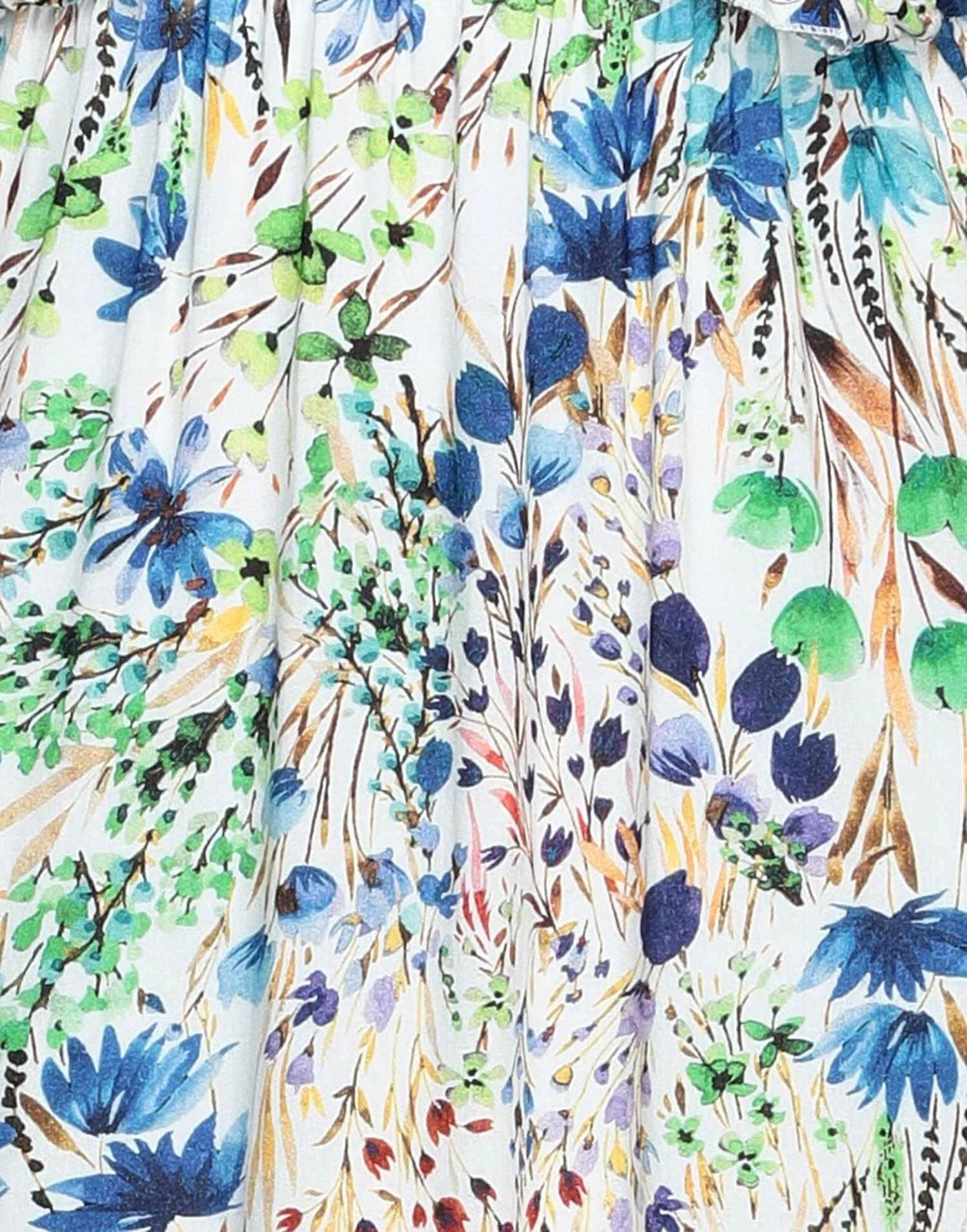 plain weave, no appliqués, floral design, deep neckline, sleeveless, no pockets, unlined