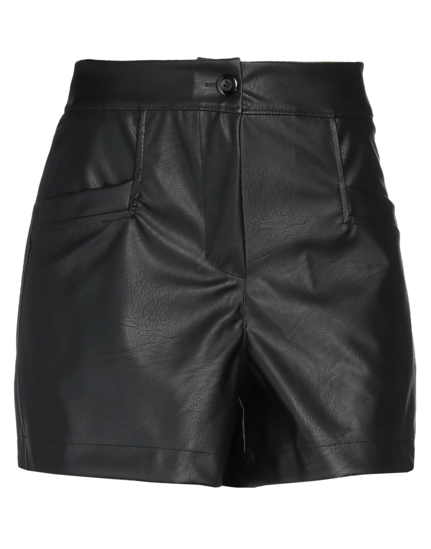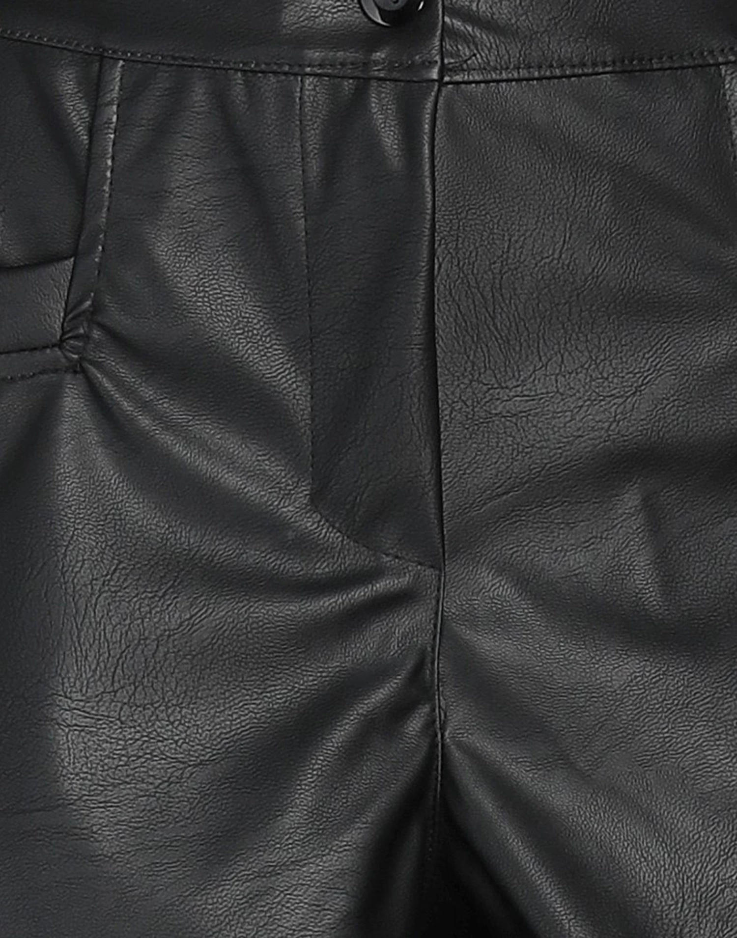 coated fabric, no appliqués, solid color, high waisted, straight leg, regular fit, 1 button, zipper closure, multipockets, pants