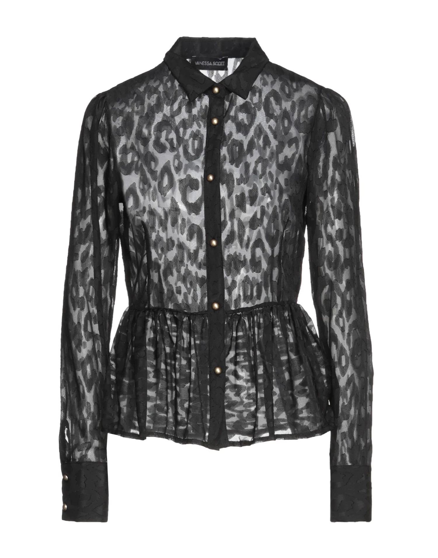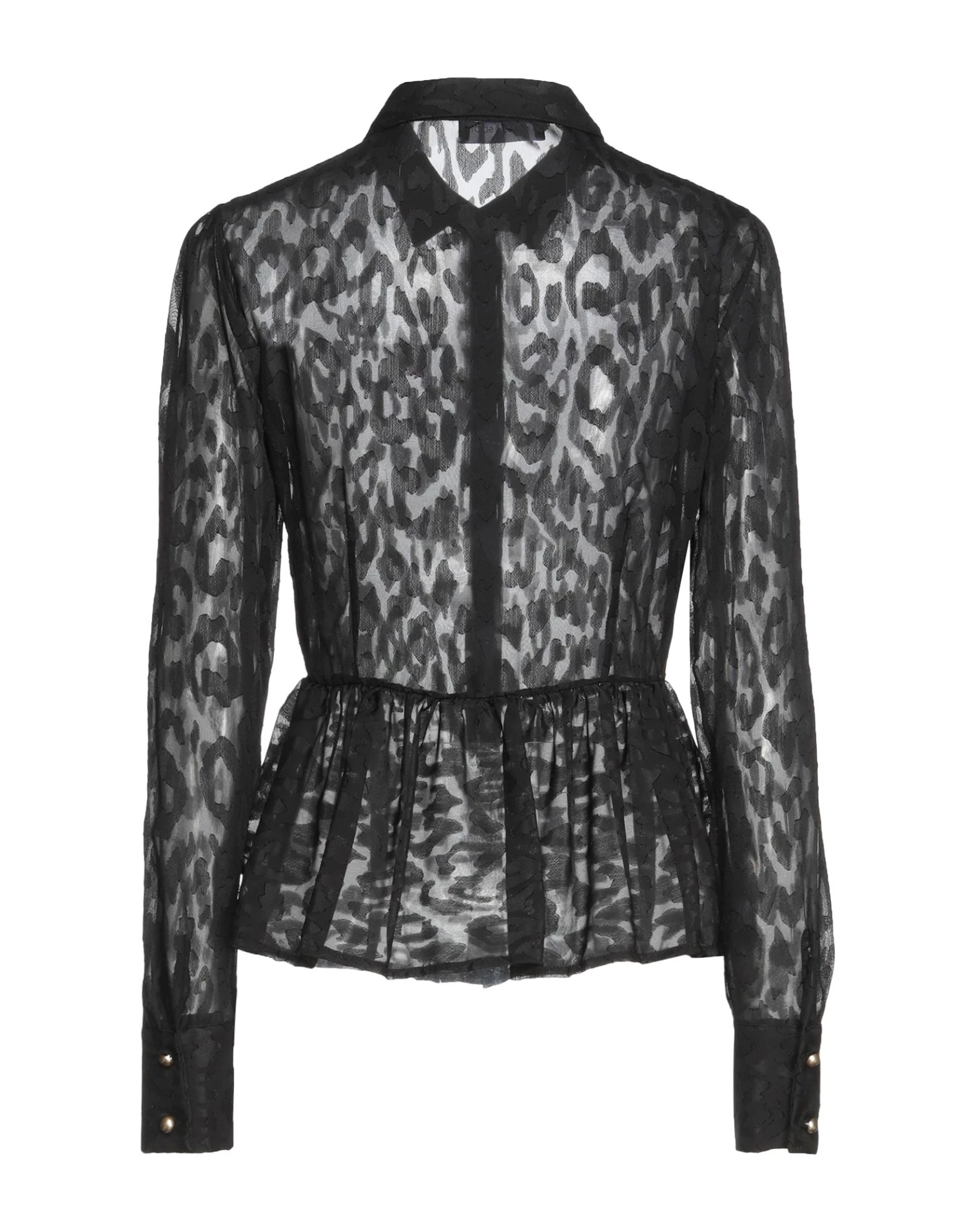 jacquard, crepe, frills, solid color, classic neckline, long sleeves, button closing, no pockets