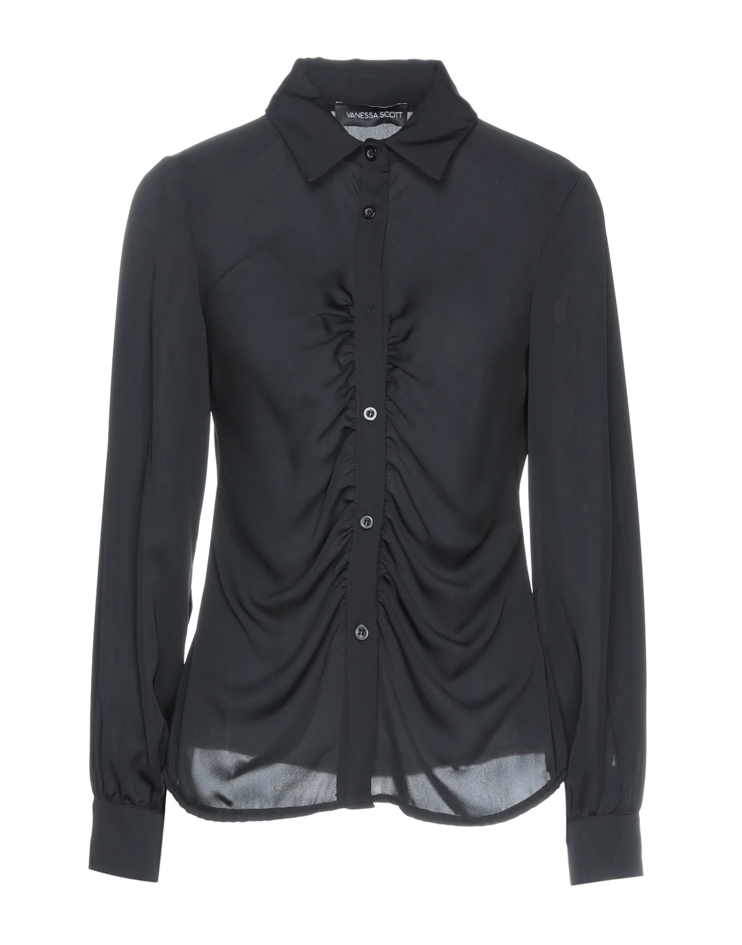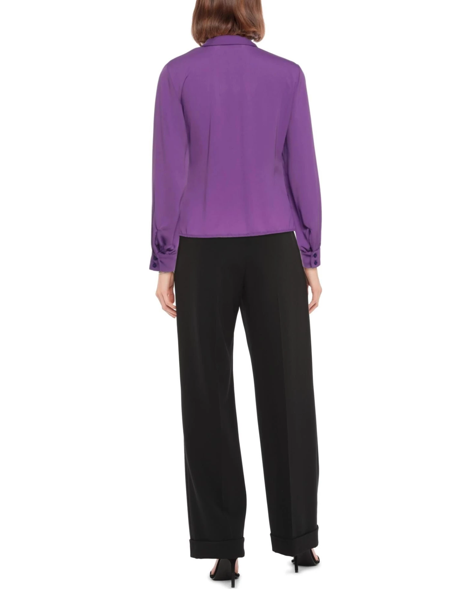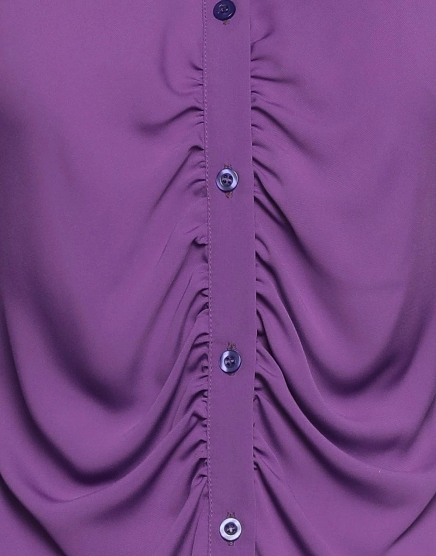 crepe, frills, solid color, classic neckline, long sleeves, buttoned cuffs, no pockets