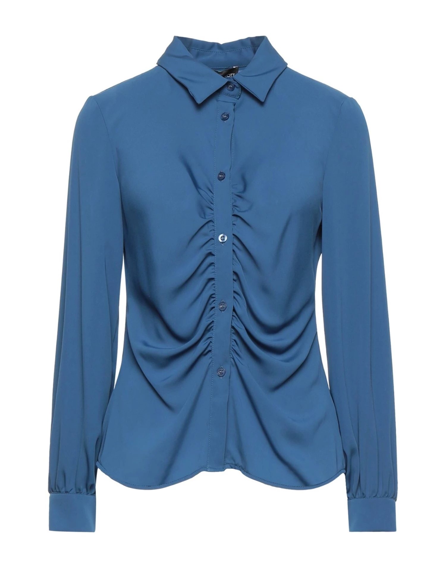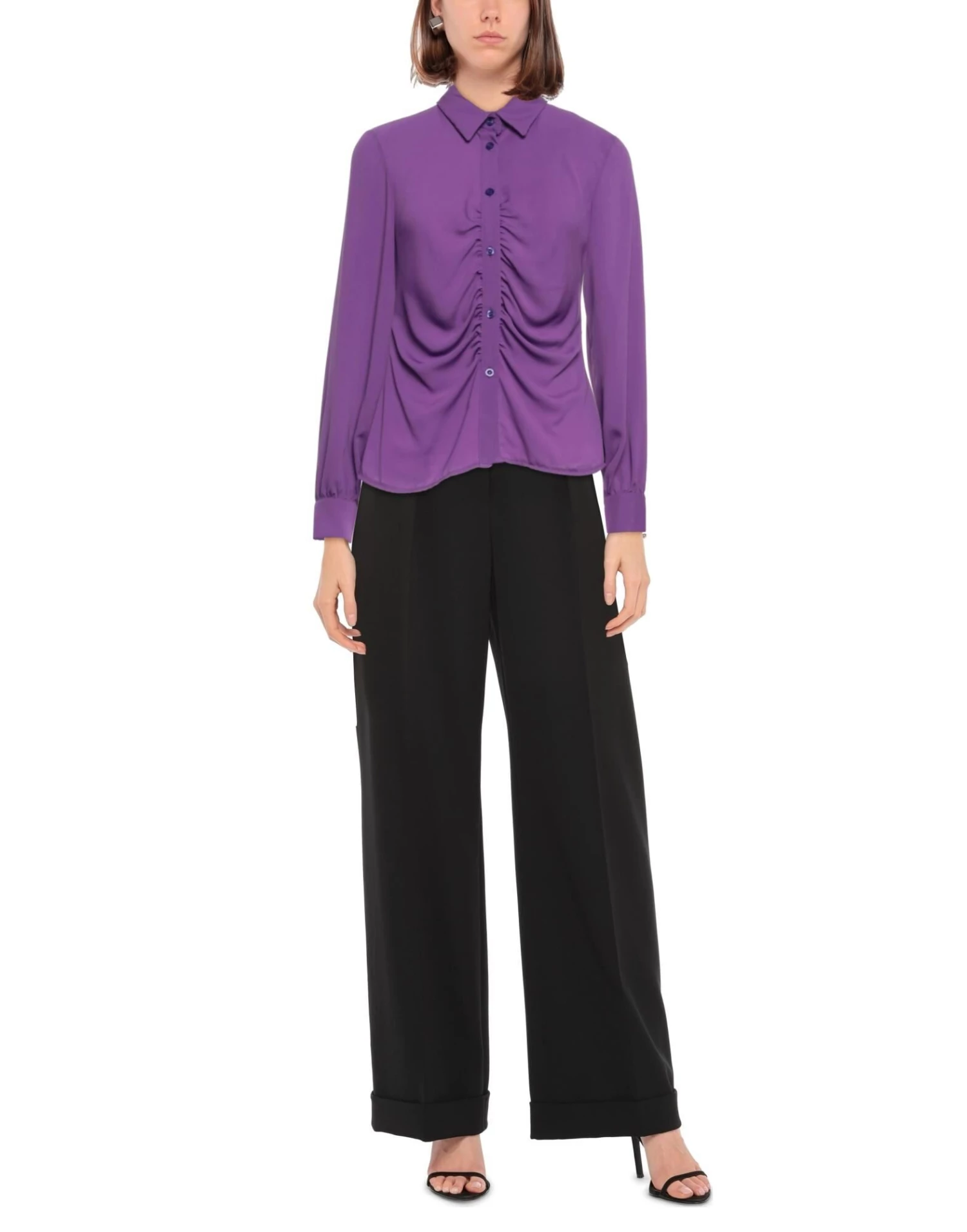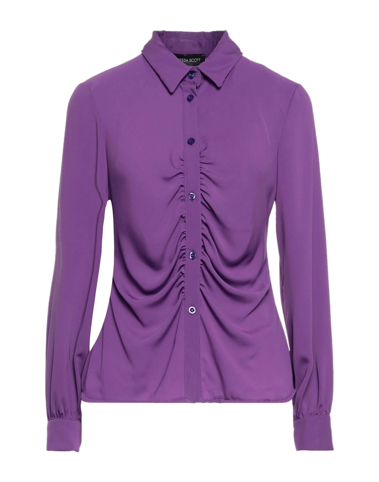 crepe, frills, solid color, classic neckline, long sleeves, buttoned cuffs, no pockets