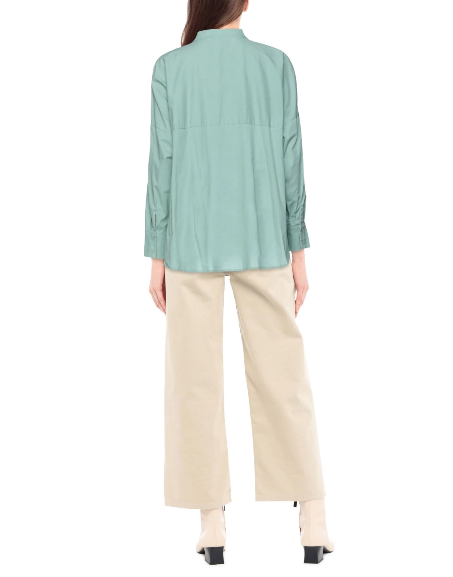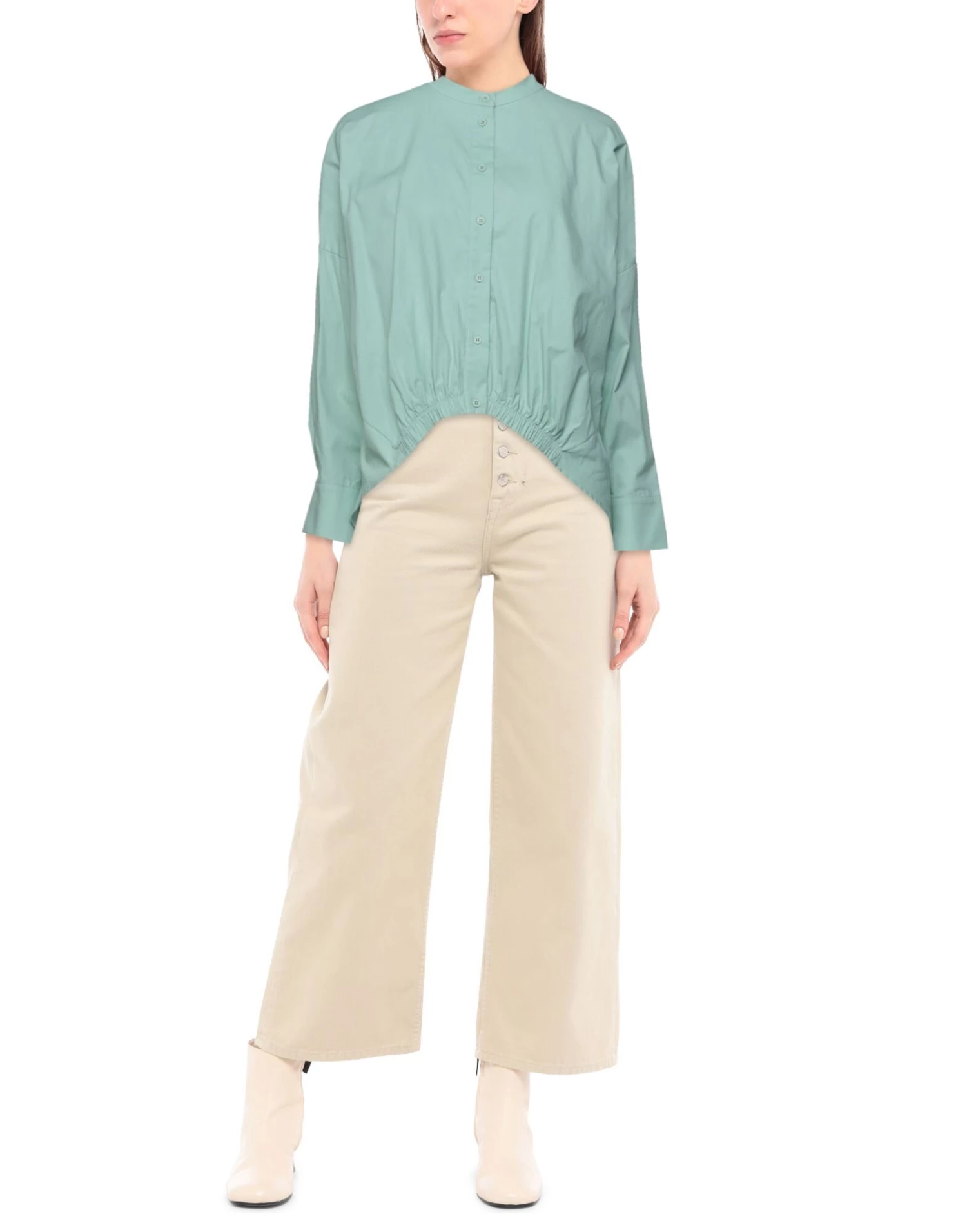 plain weave, no appliqués, solid color, mandarin collar, long sleeves, buttoned cuffs, button closing, no pockets, stretch