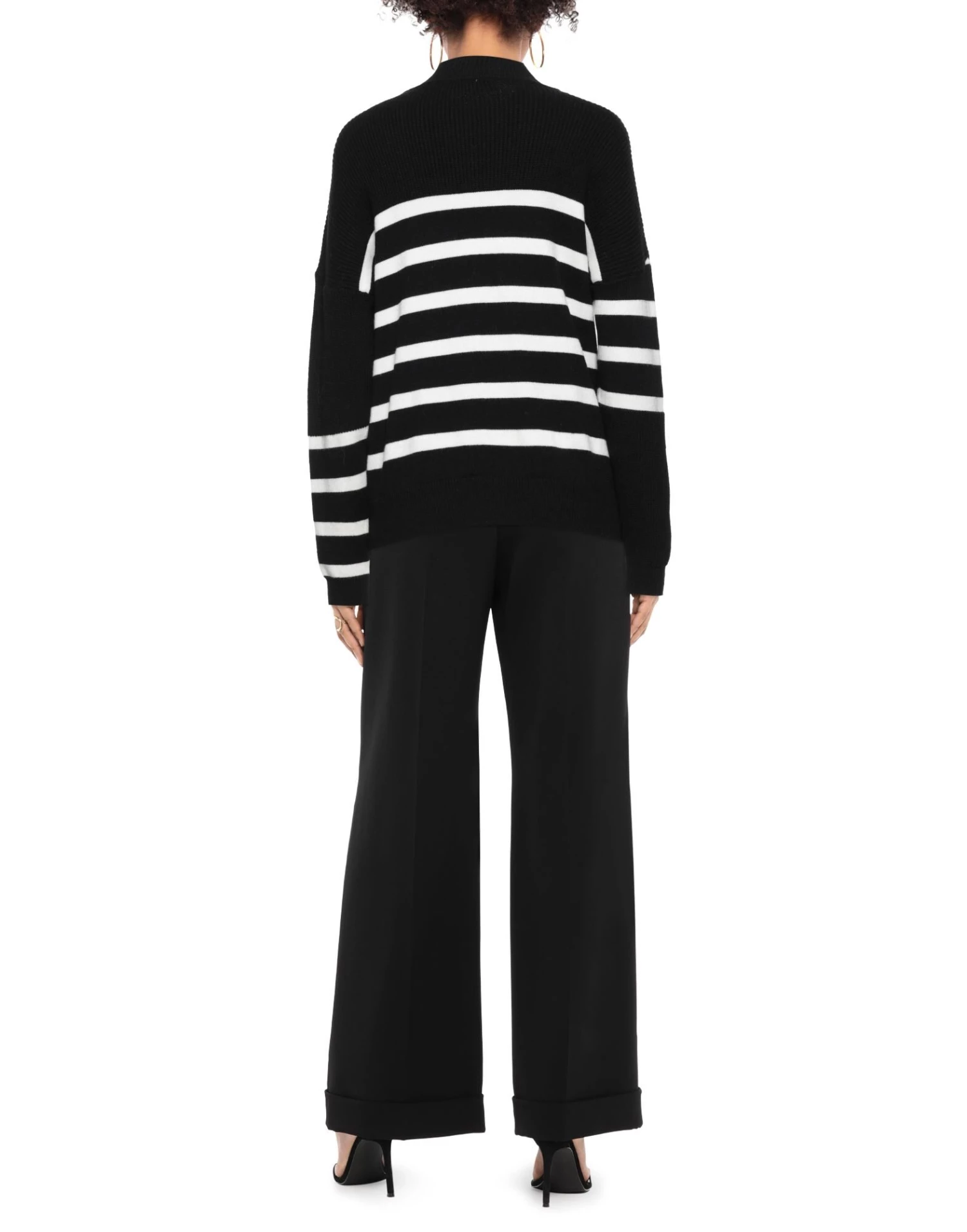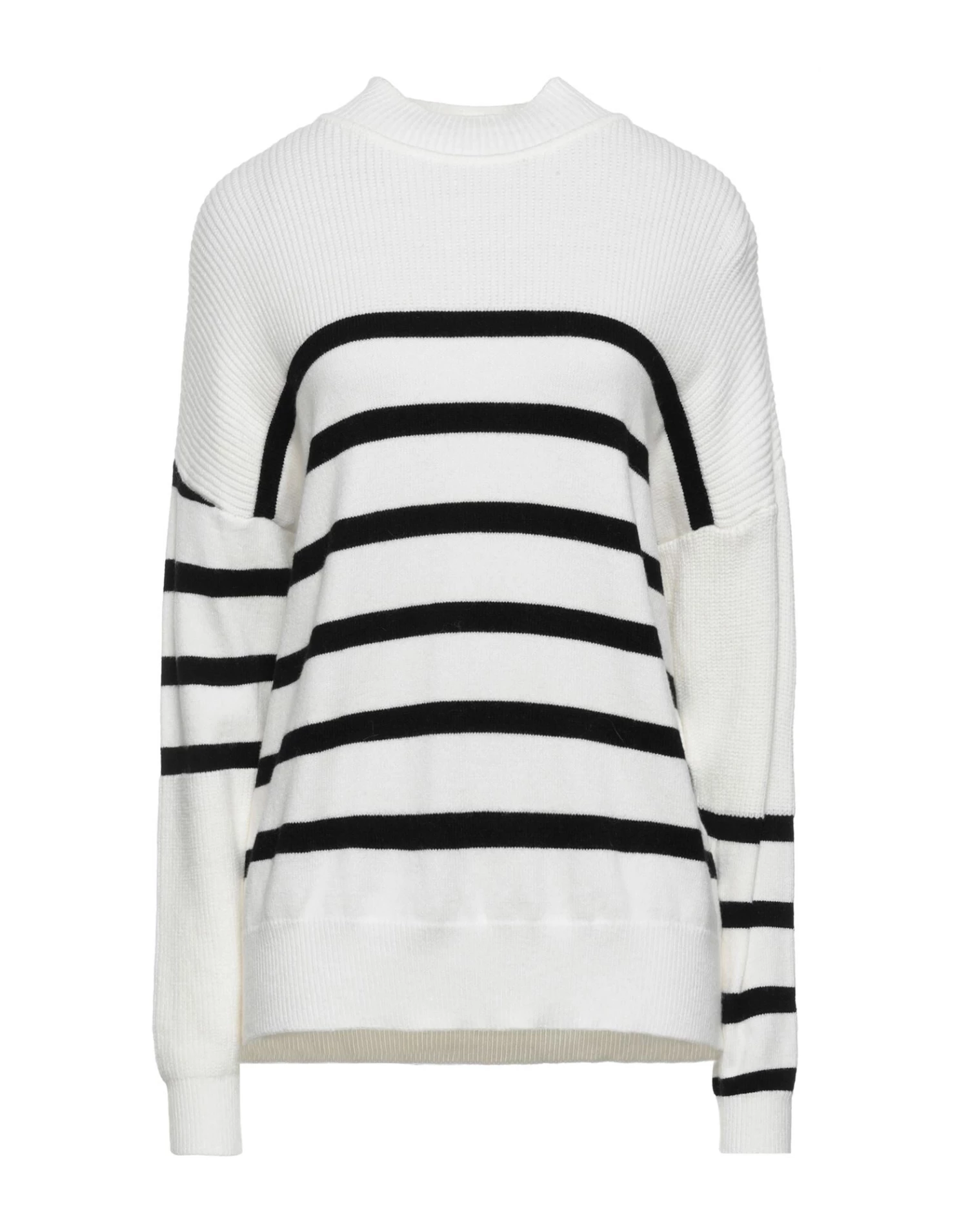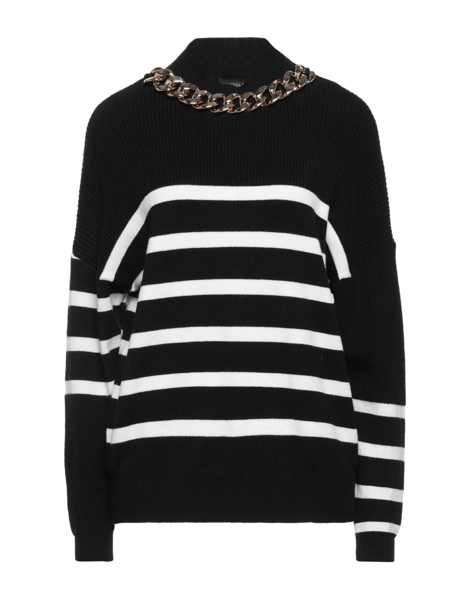 knitted, lightweight knit, contrasting applications, stripes, round collar, long sleeves, no pockets