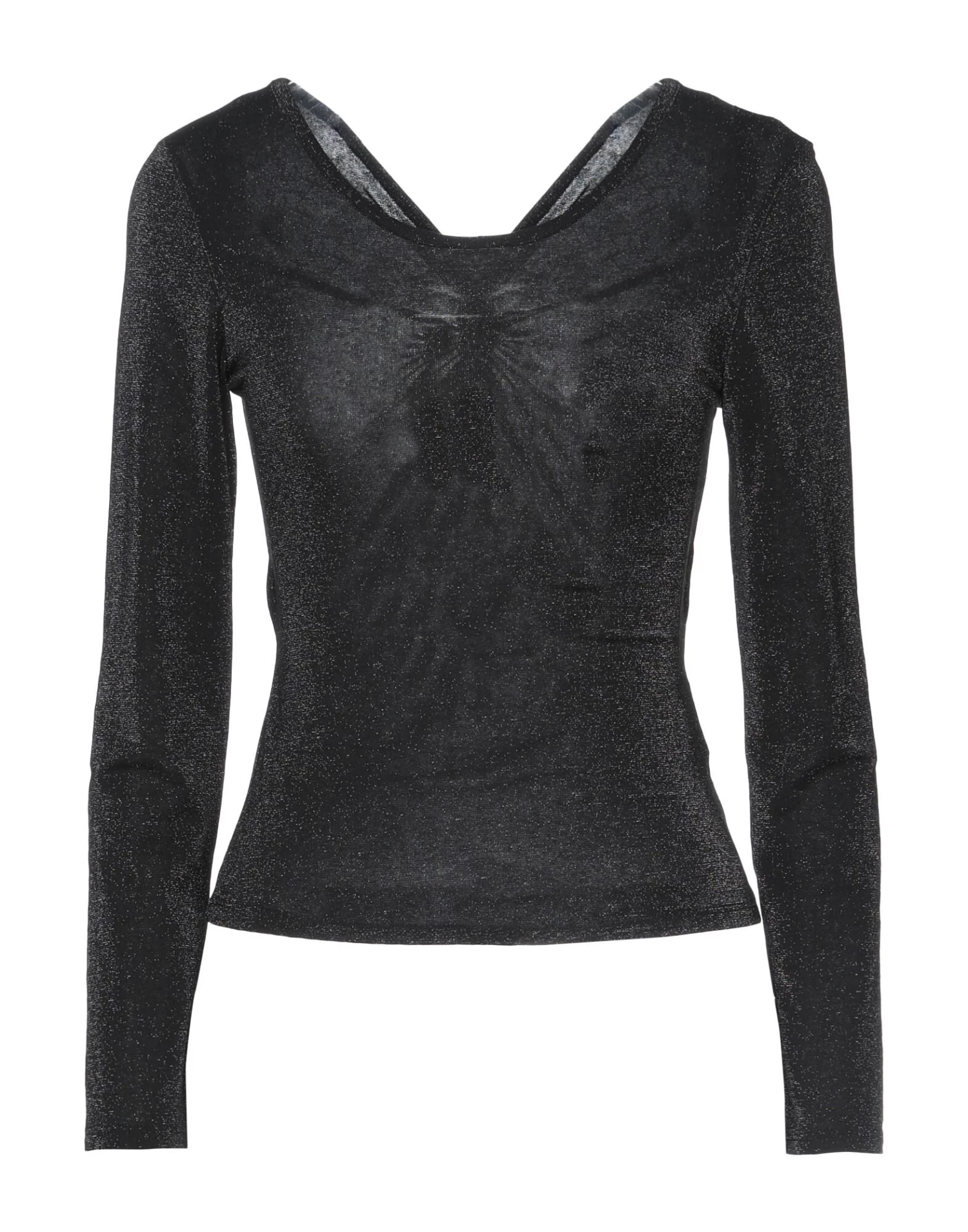 knitted, lamé, no appliqués, solid color, round collar, long sleeves, no pockets, stretch, lightweight knit