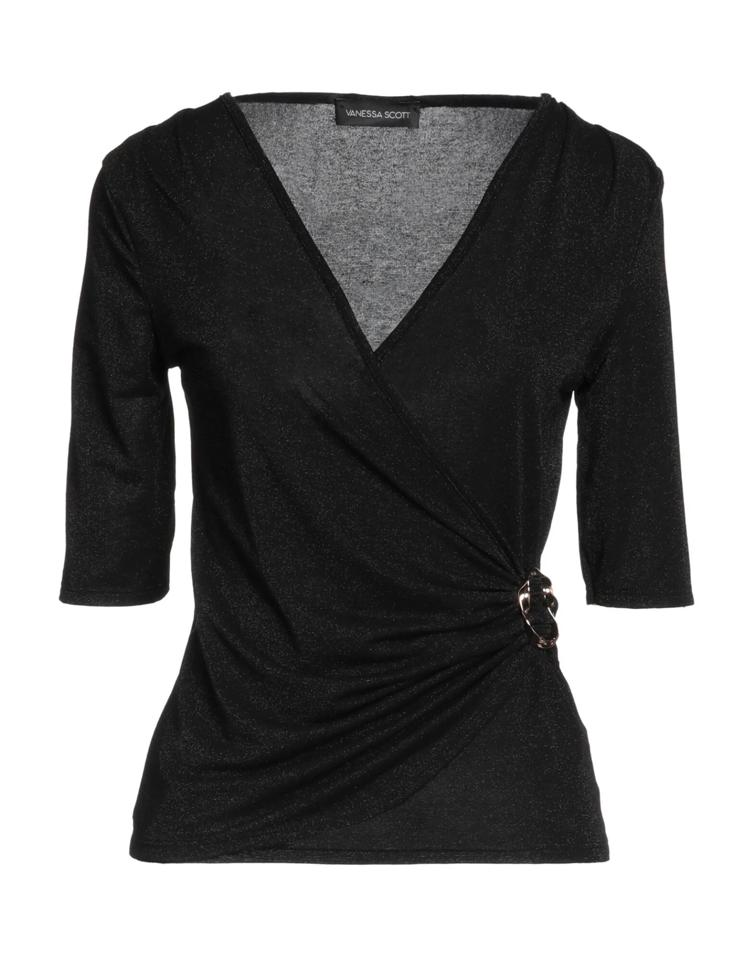 knitted, lamé, lightweight knit, metal applications, solid colour with appliqués, deep neckline, short sleeves, no pockets, stretch