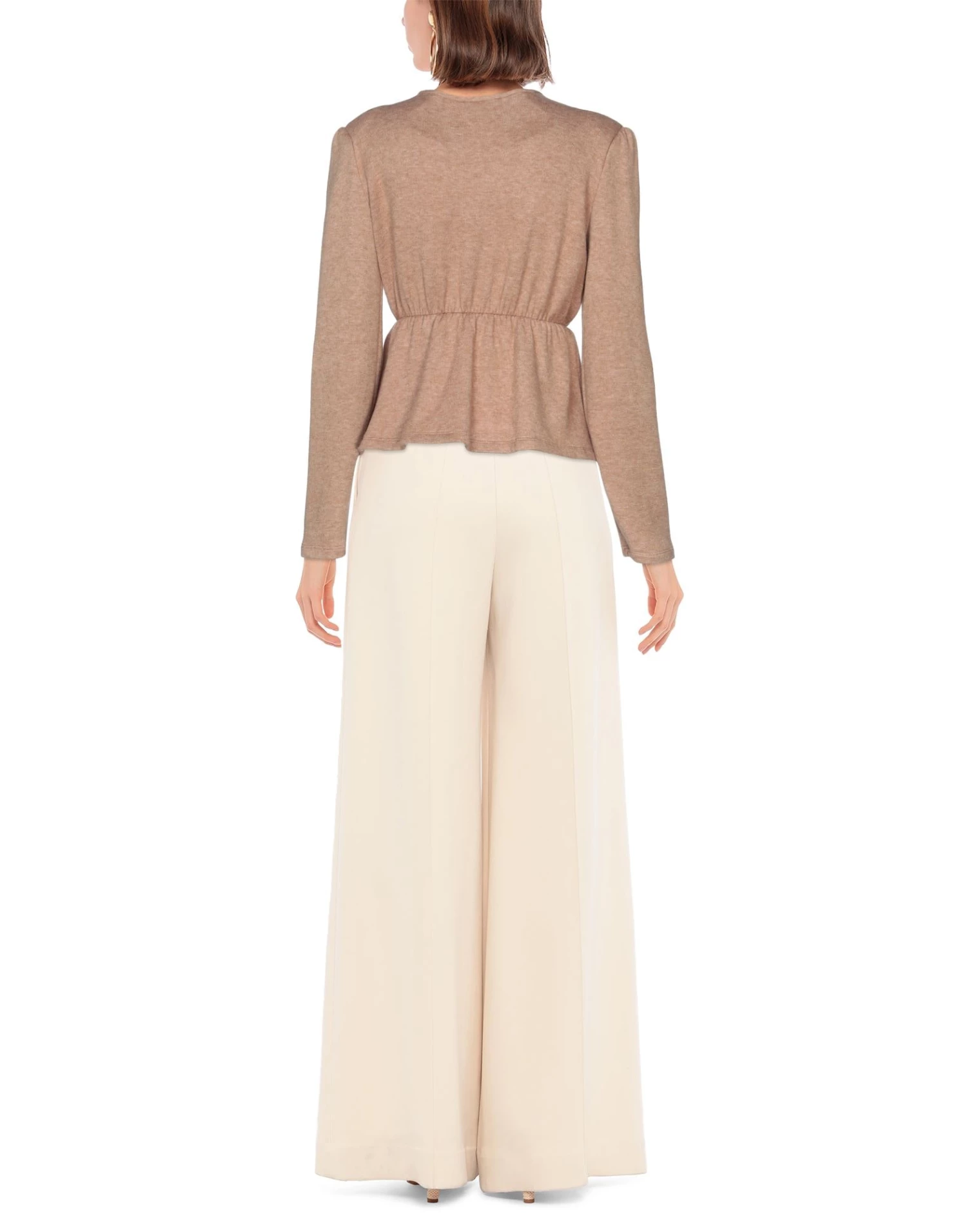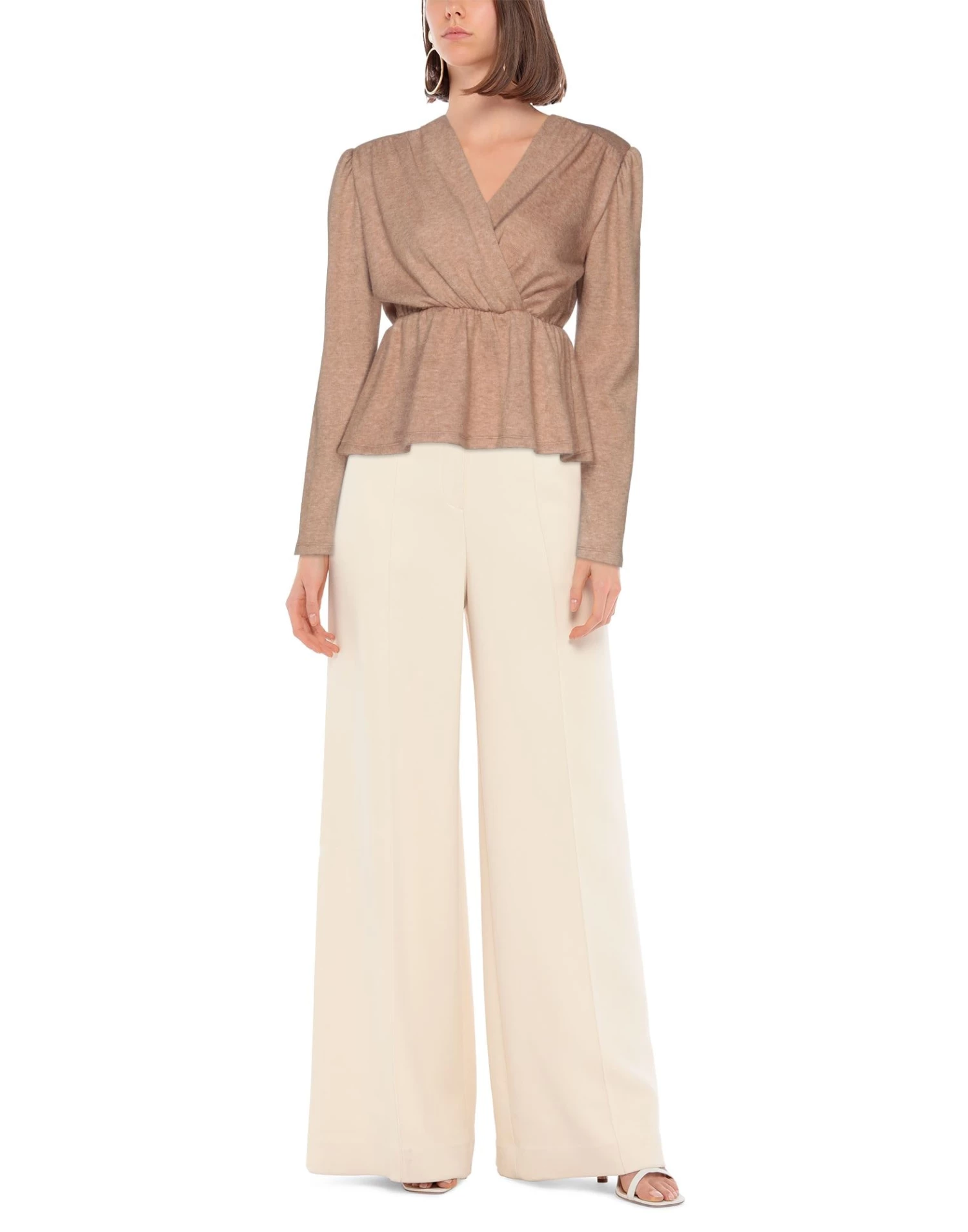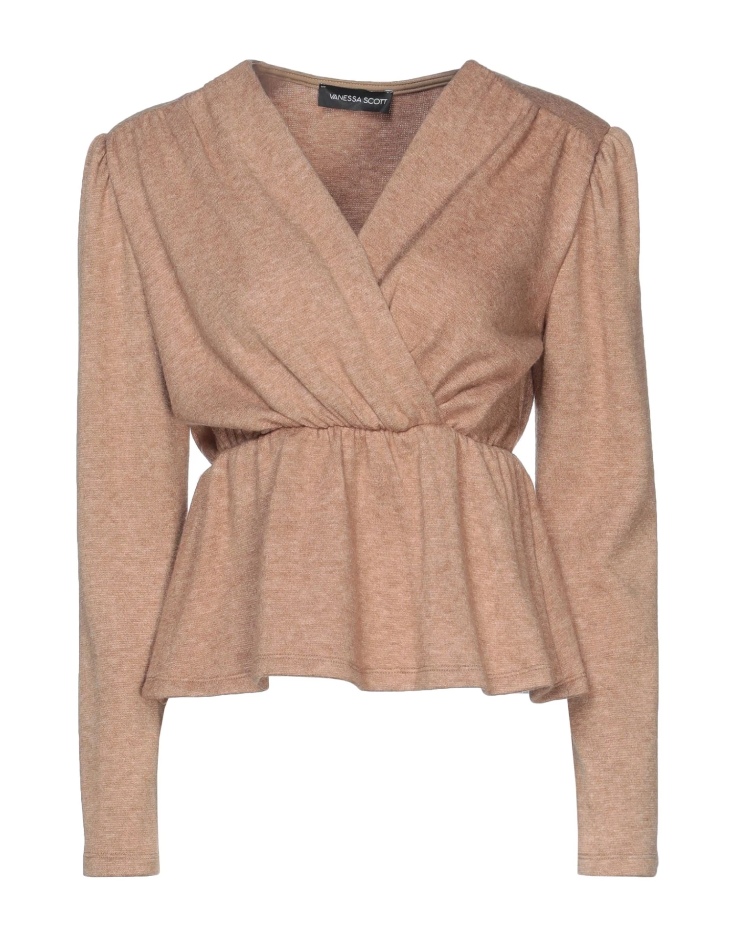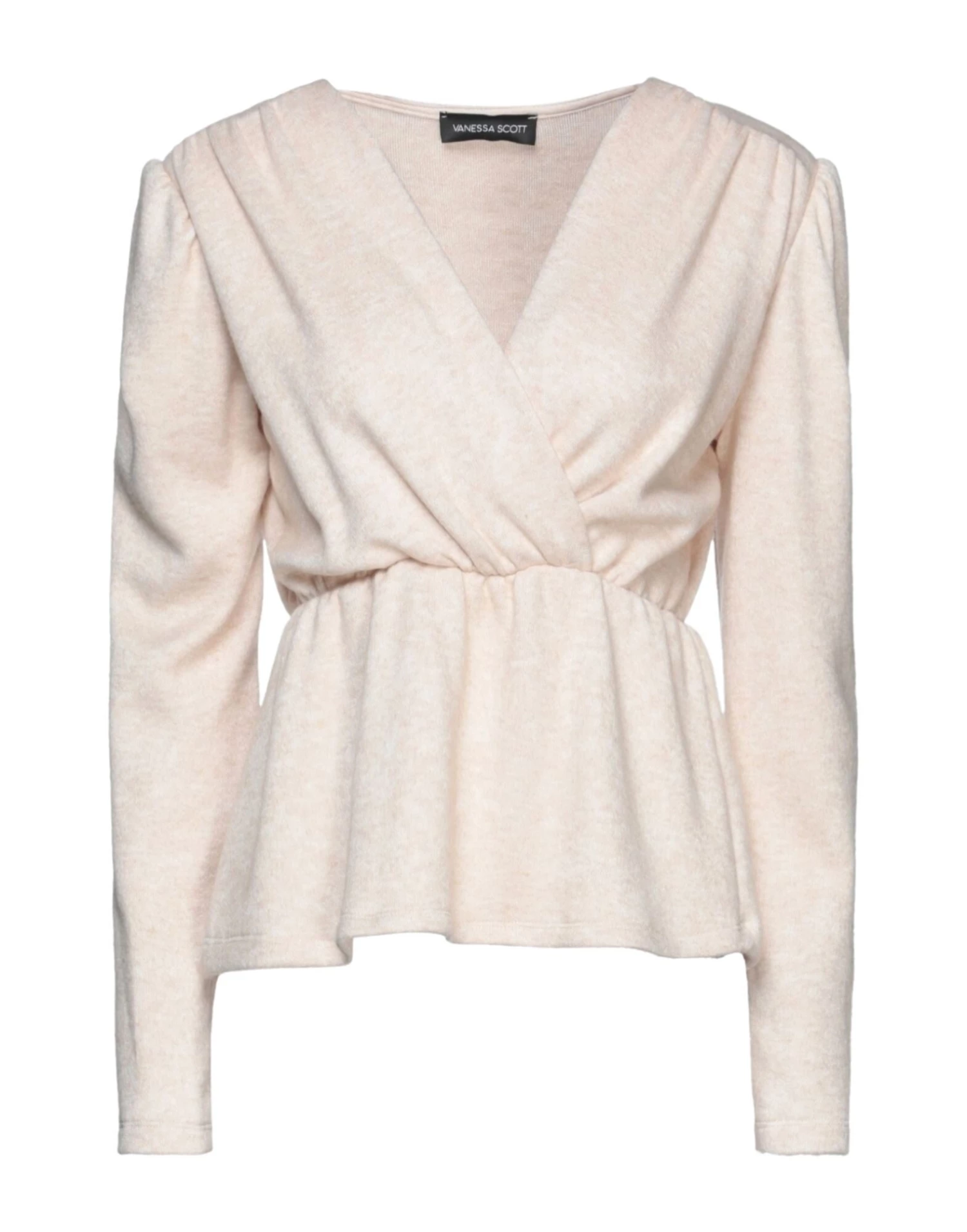 knitted, lightweight knit, frills, solid color, v-neck, long sleeves, with shoulder pad, no pockets, mélange