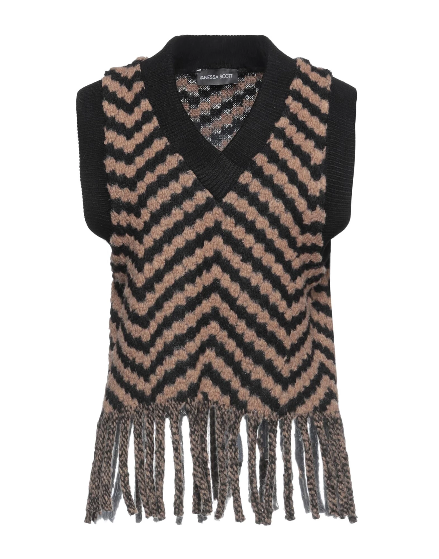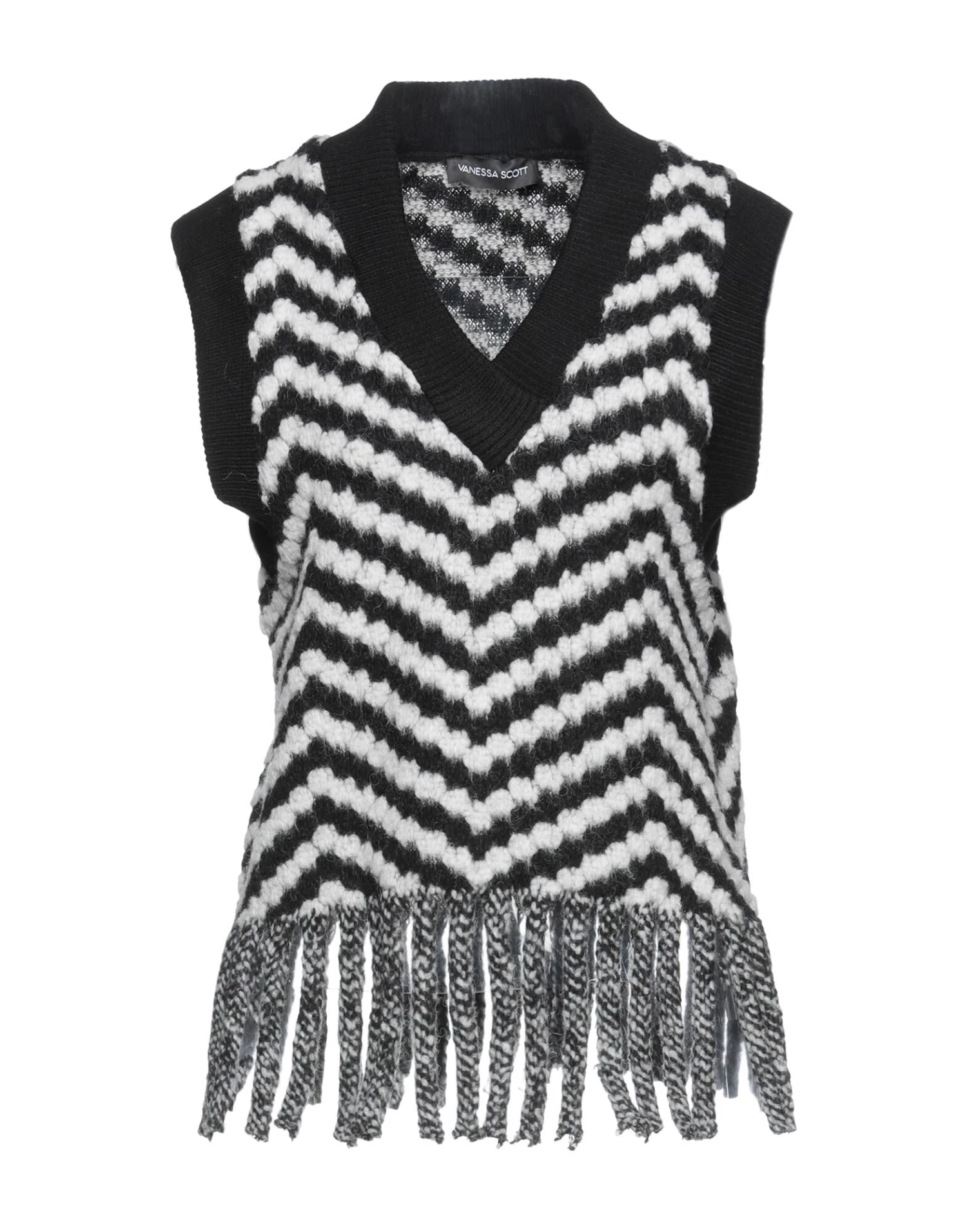 bouclé, fringes, two-tone, v-neck, sleeveless, medium-weight knit, no pockets