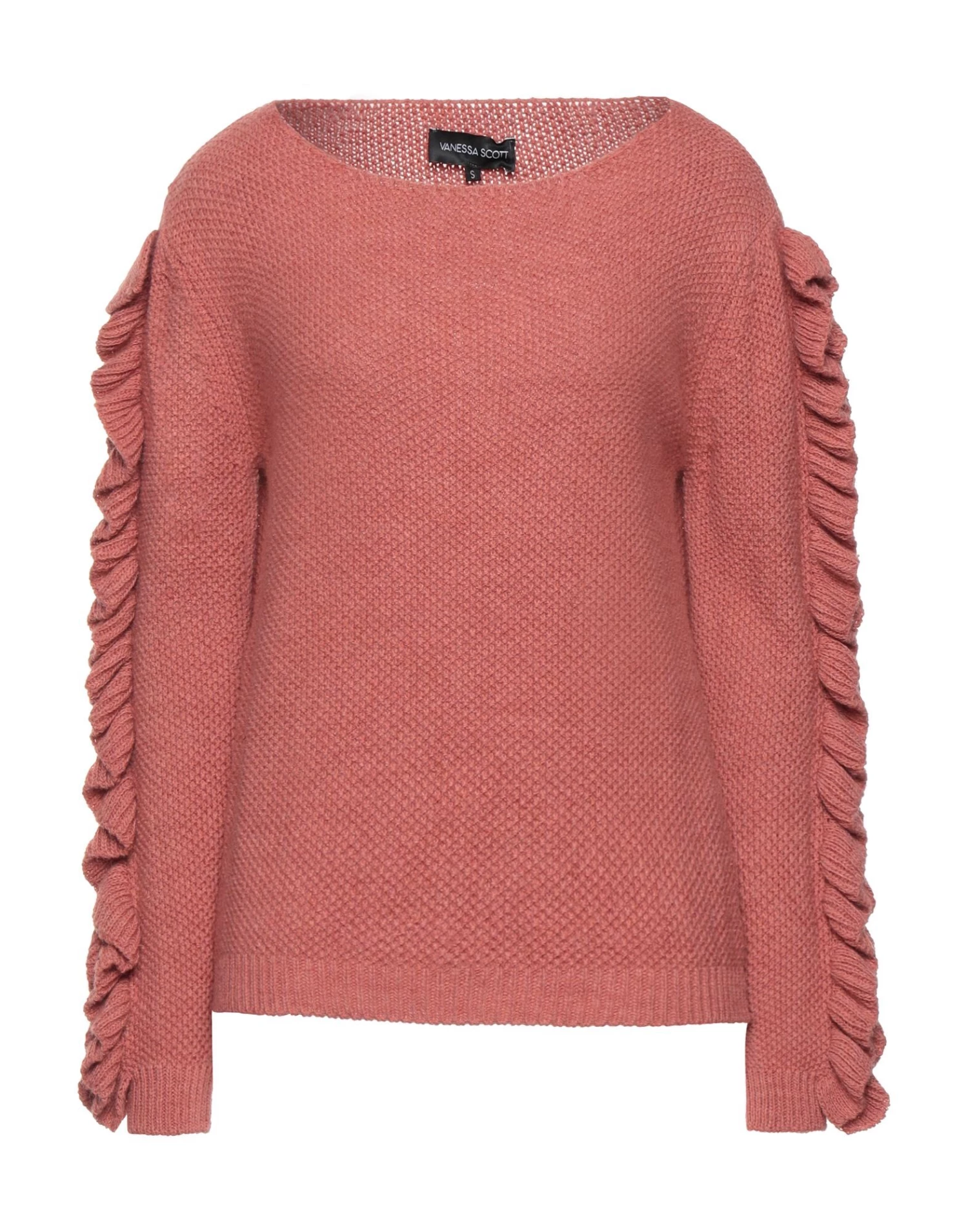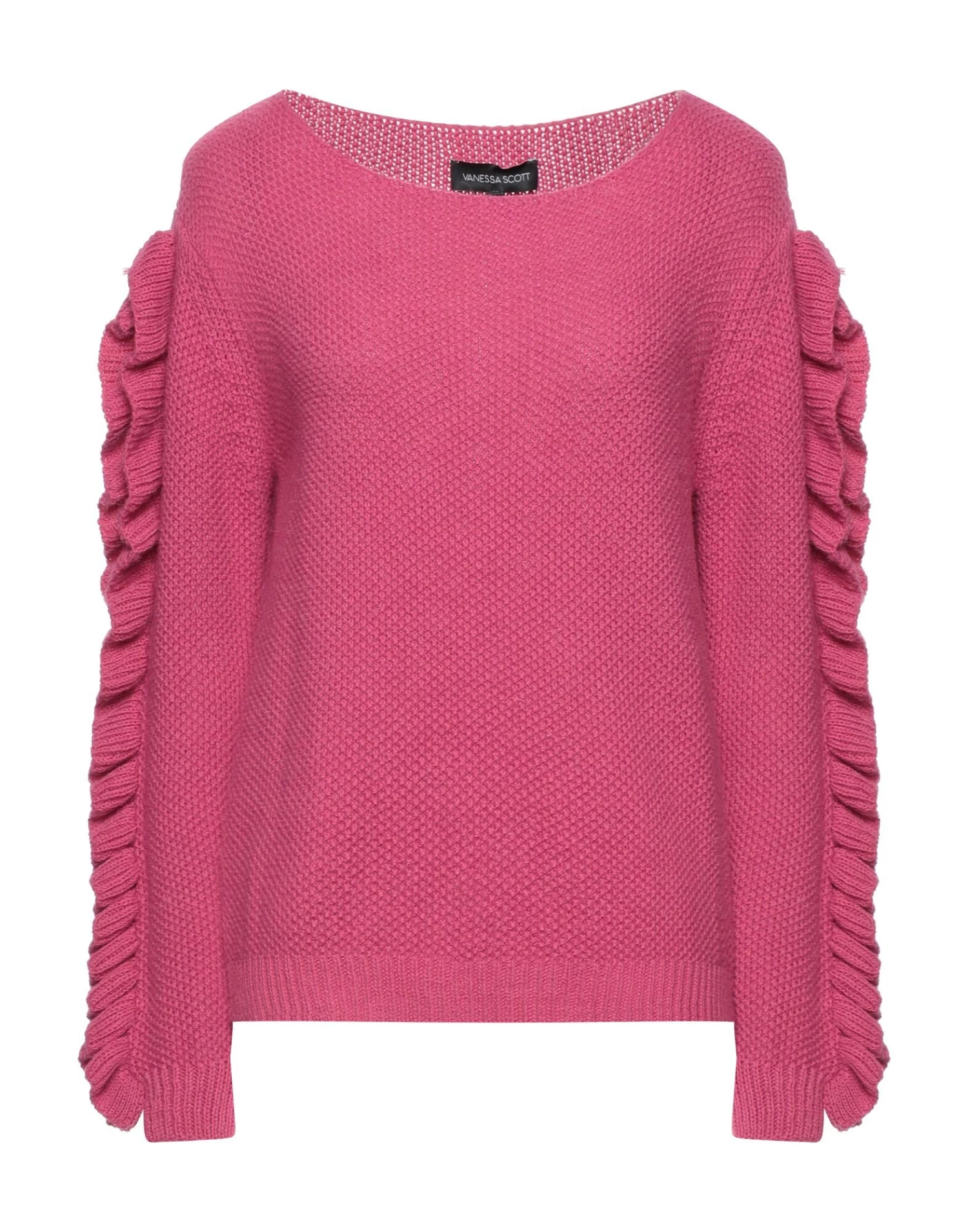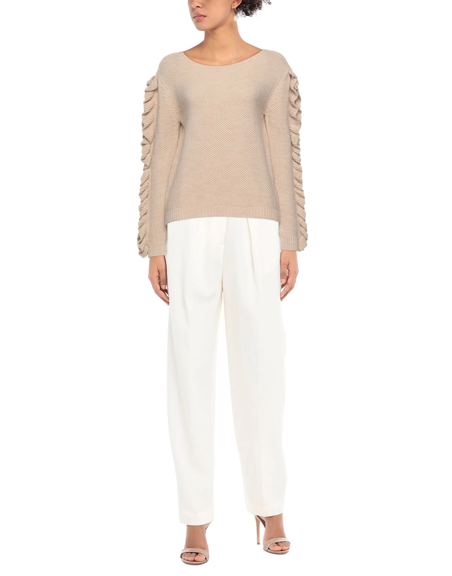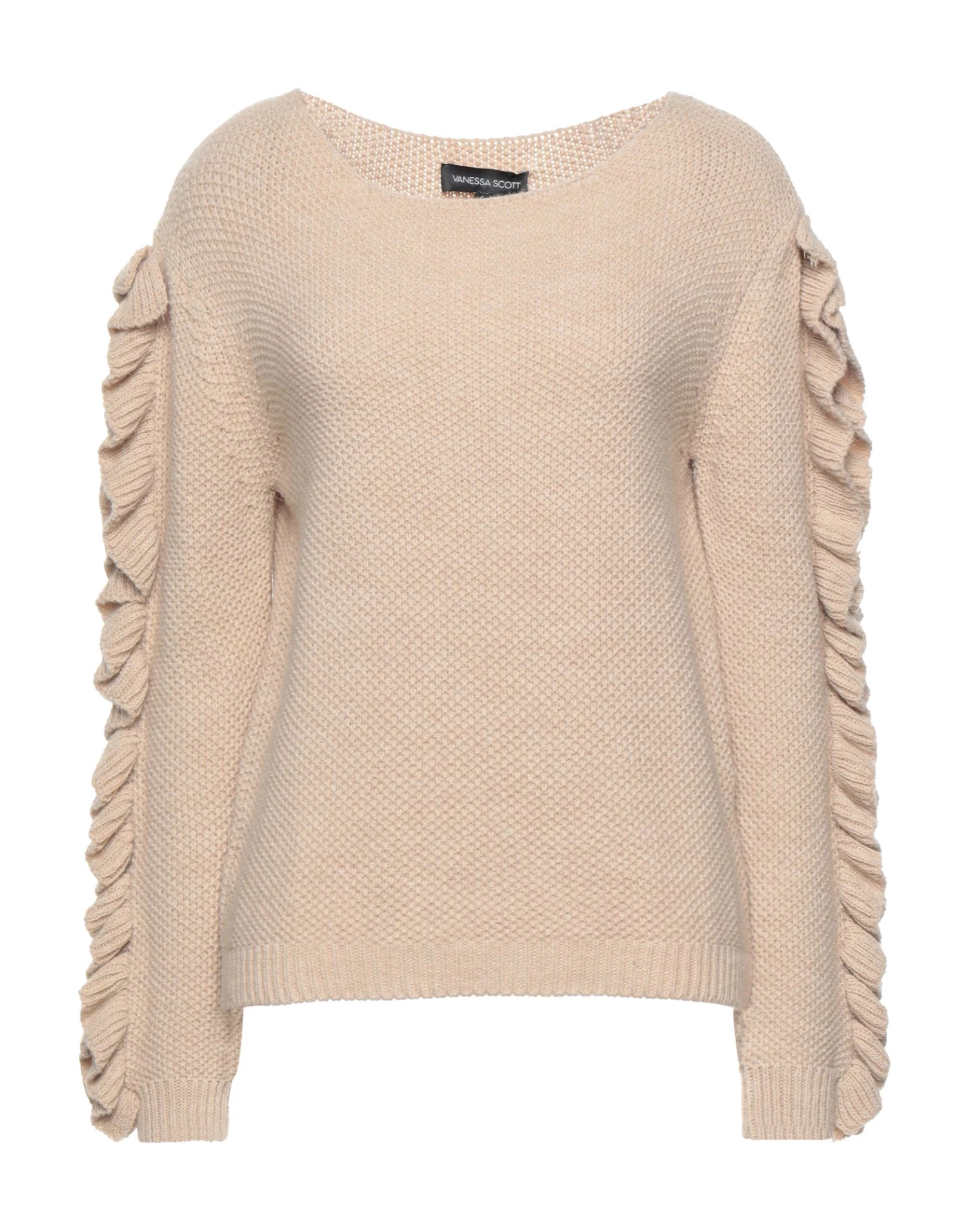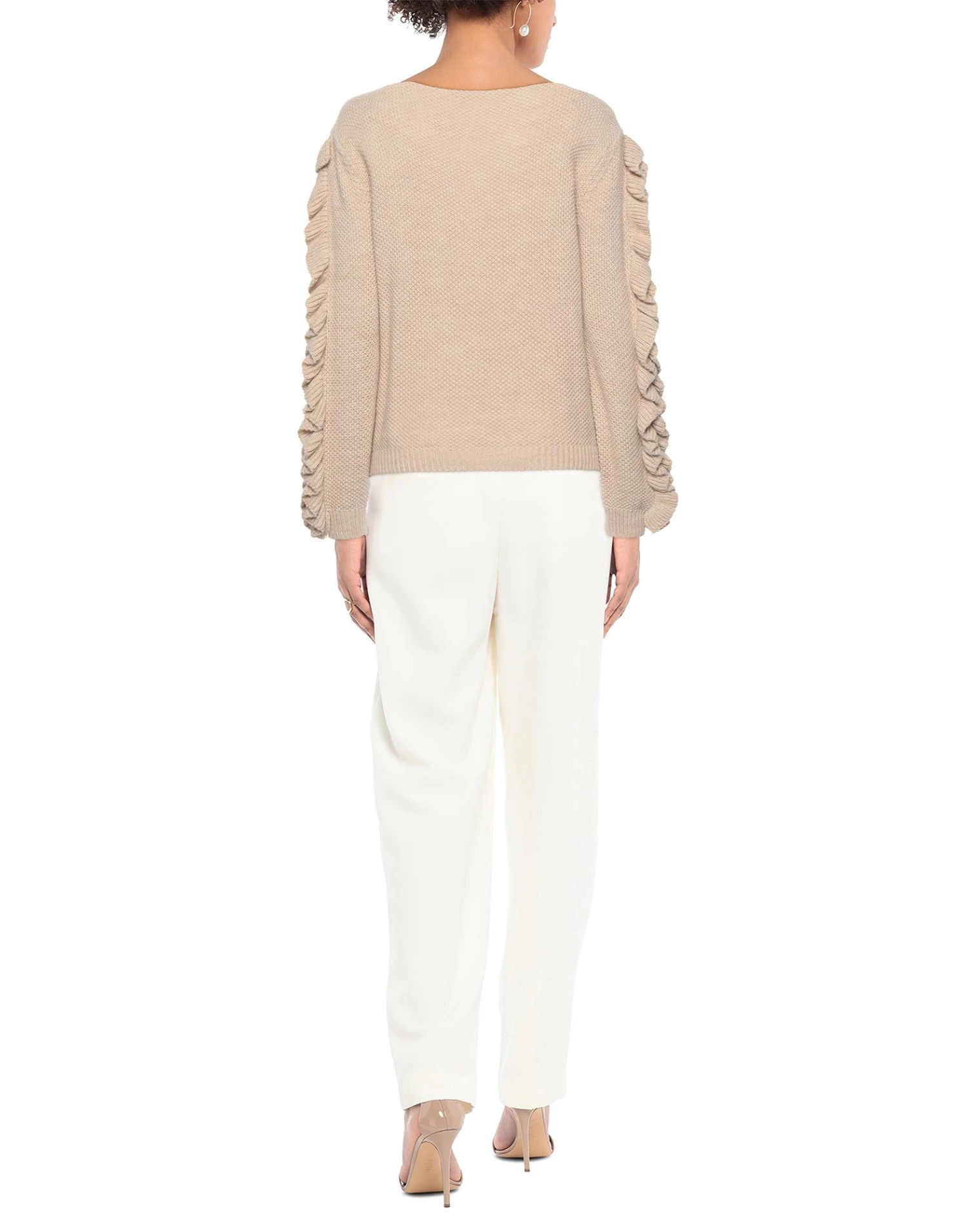 knitted, lightweight knit, ruffles, solid color, round collar, long sleeves, no pockets