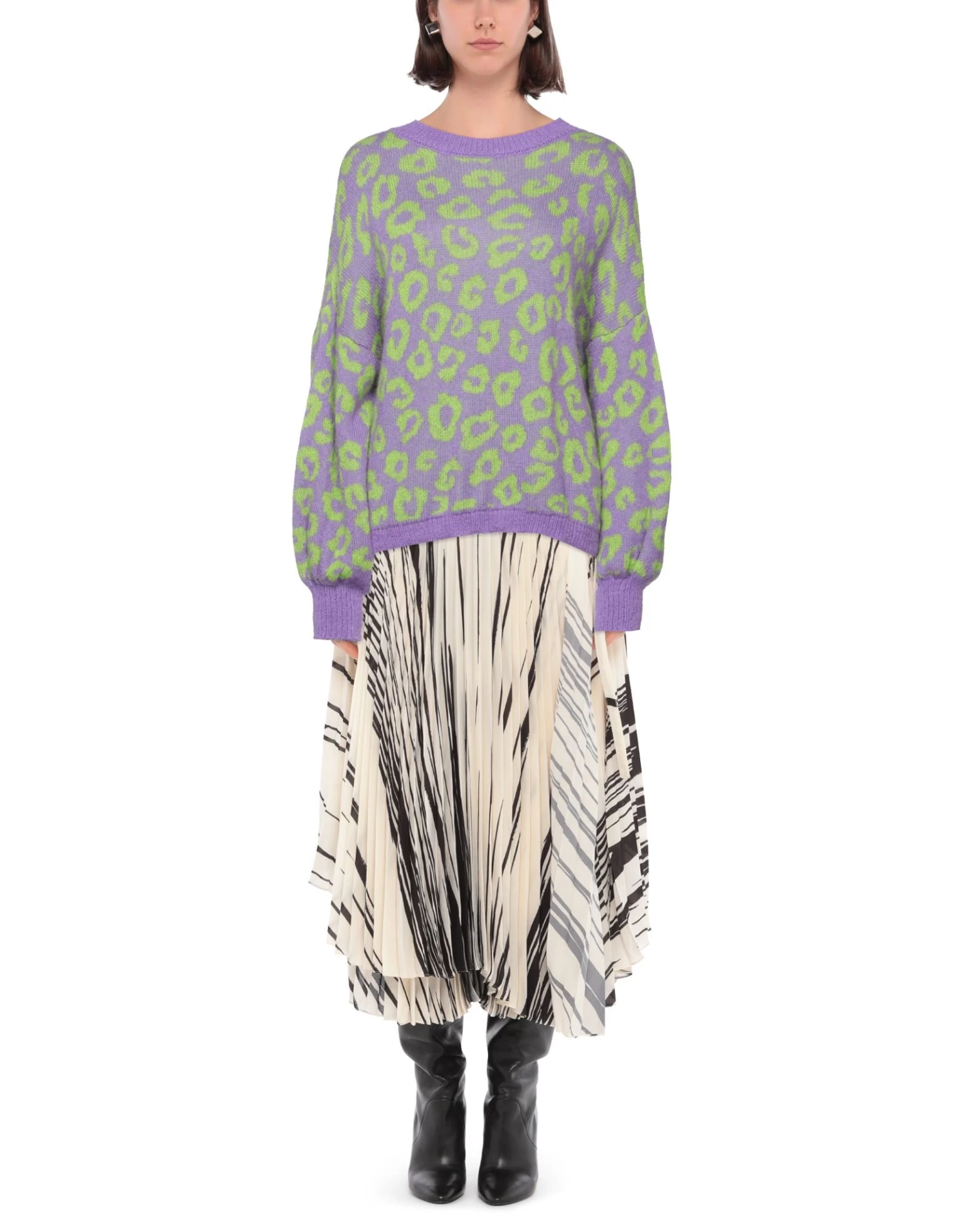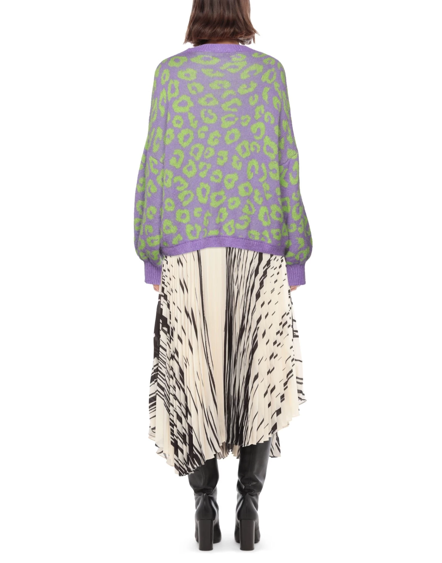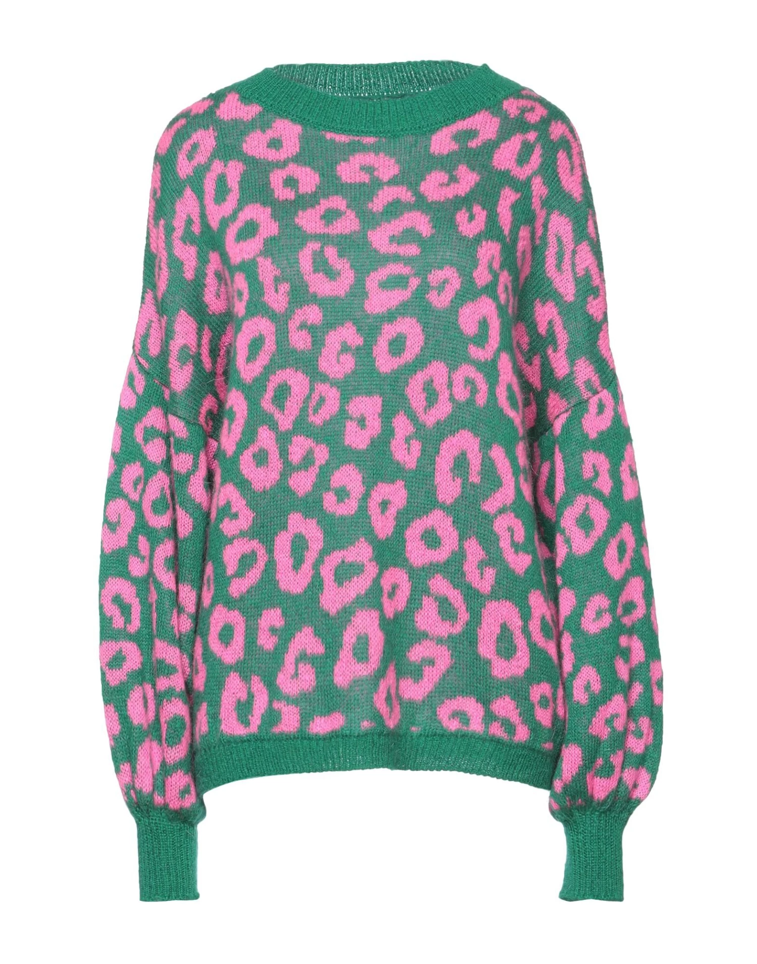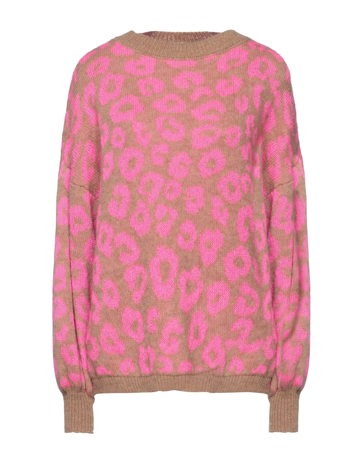 knitted, lightweight knit, no appliqués, leopard-print, round collar, long sleeves, no pockets