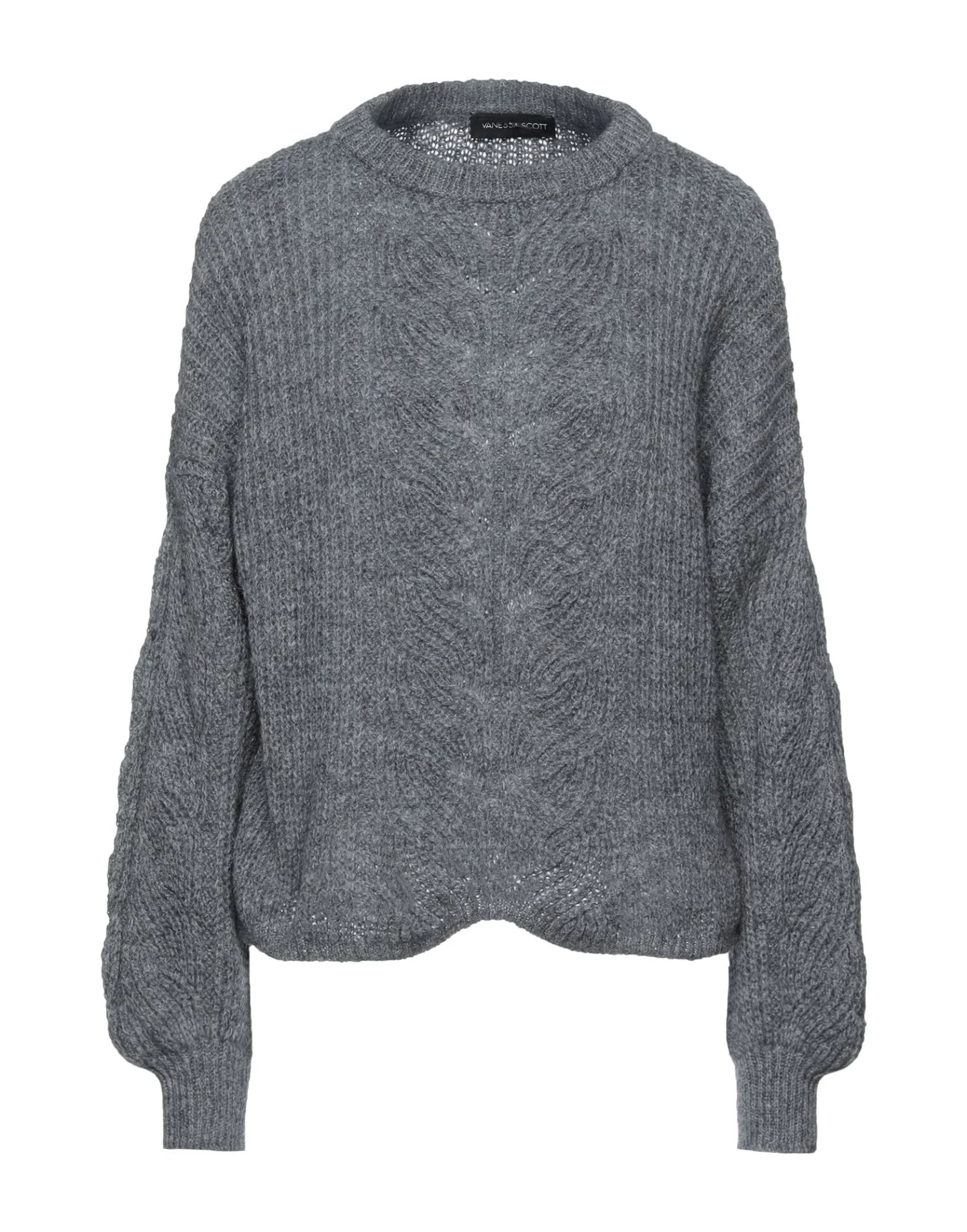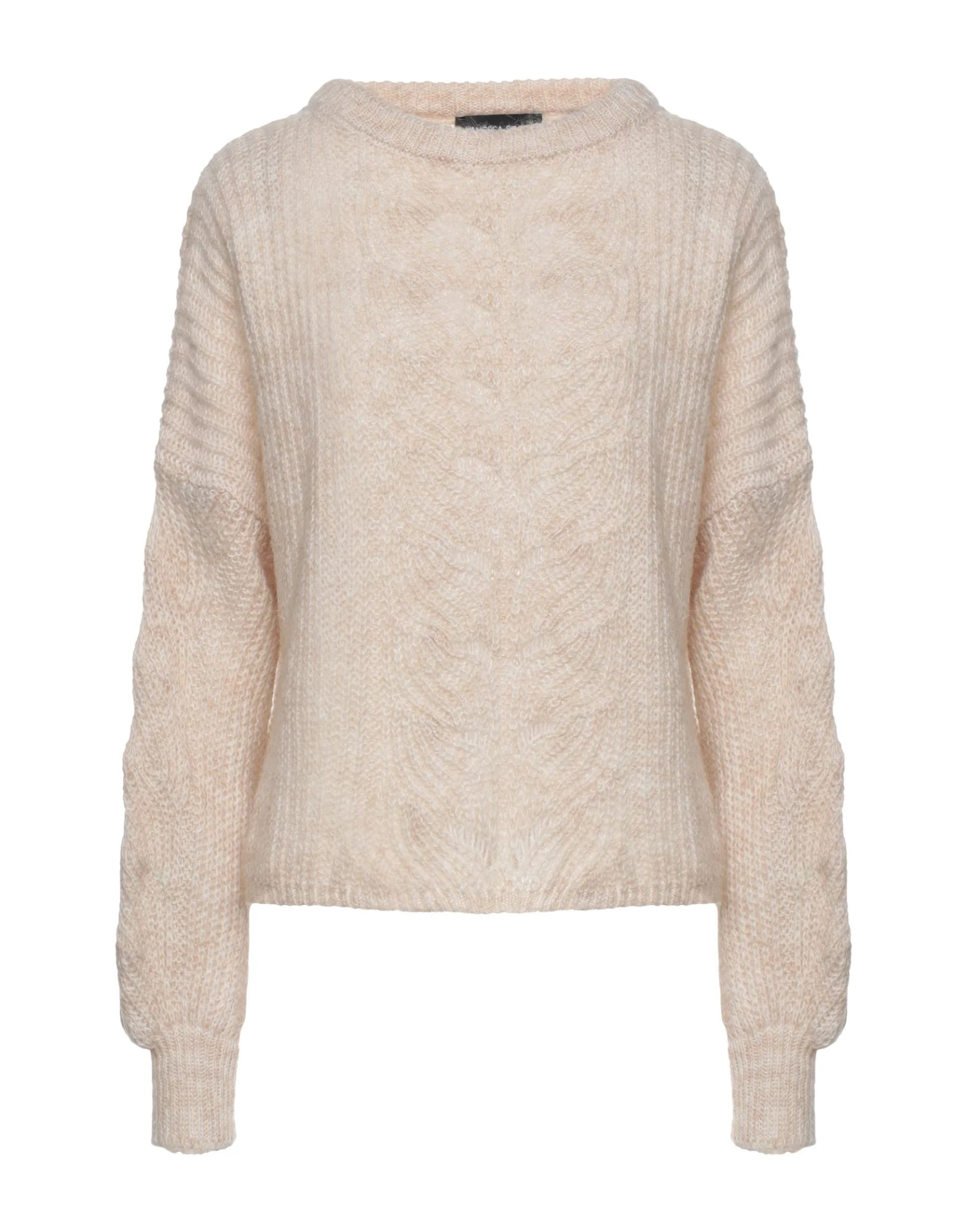 knitted, mélange, medium-weight knit, no appliqués, solid color, round collar, long sleeves, no pockets