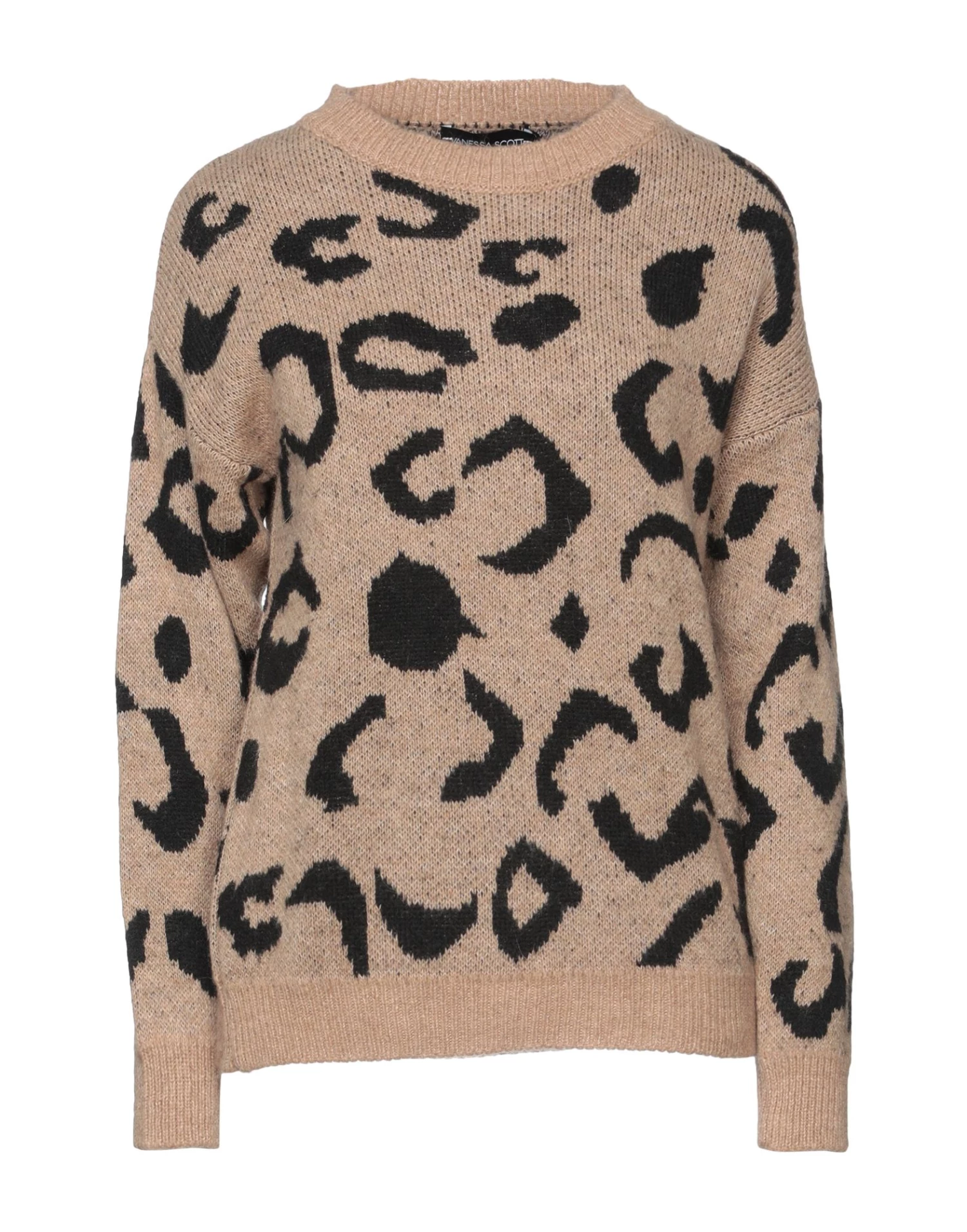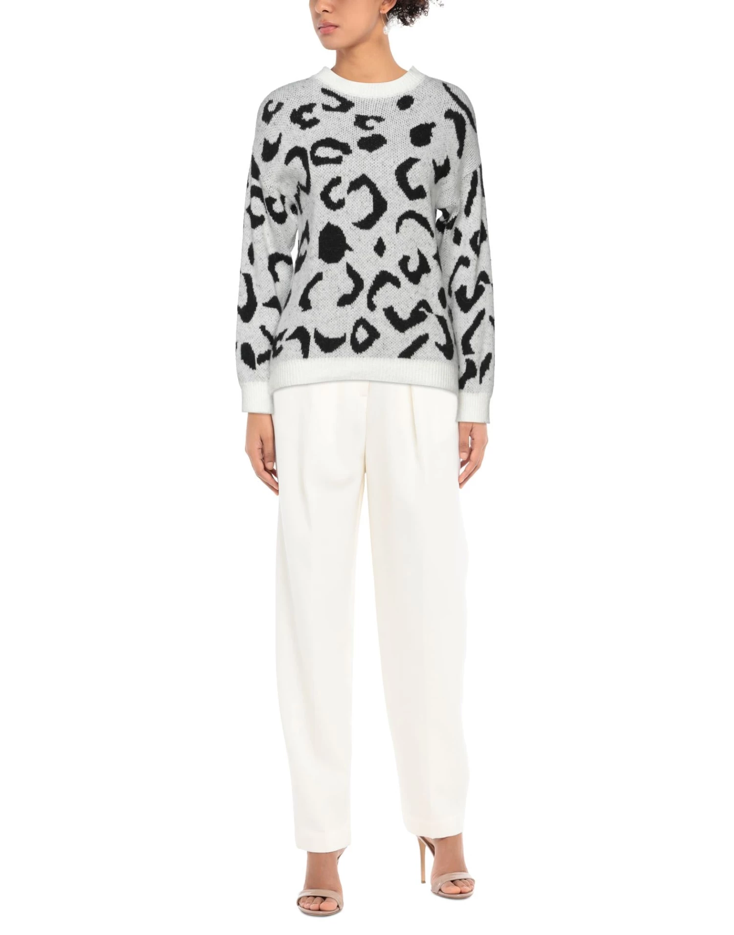 knitted, lightweight knit, leopard-print, round collar, long sleeves, no pockets, no appliqués