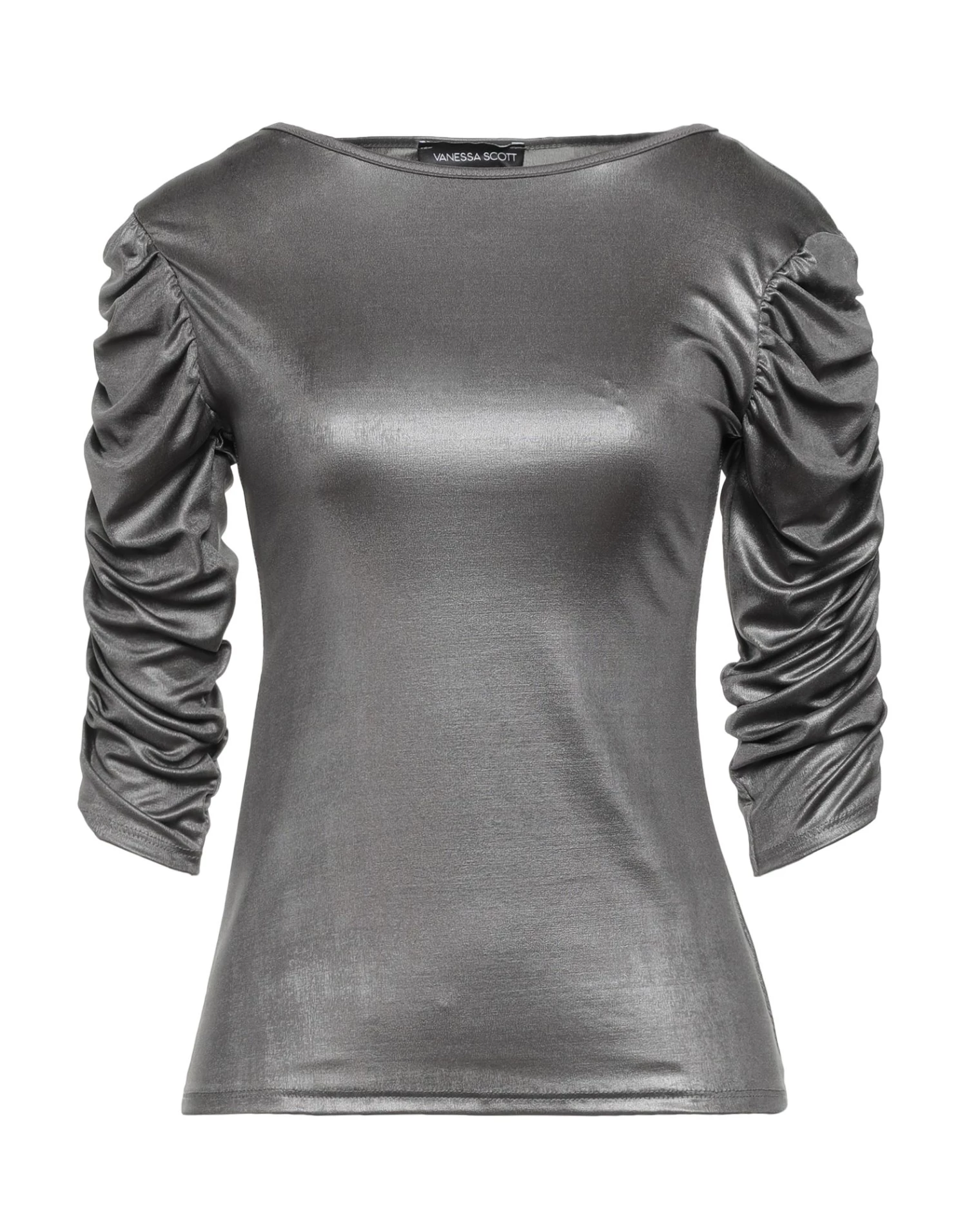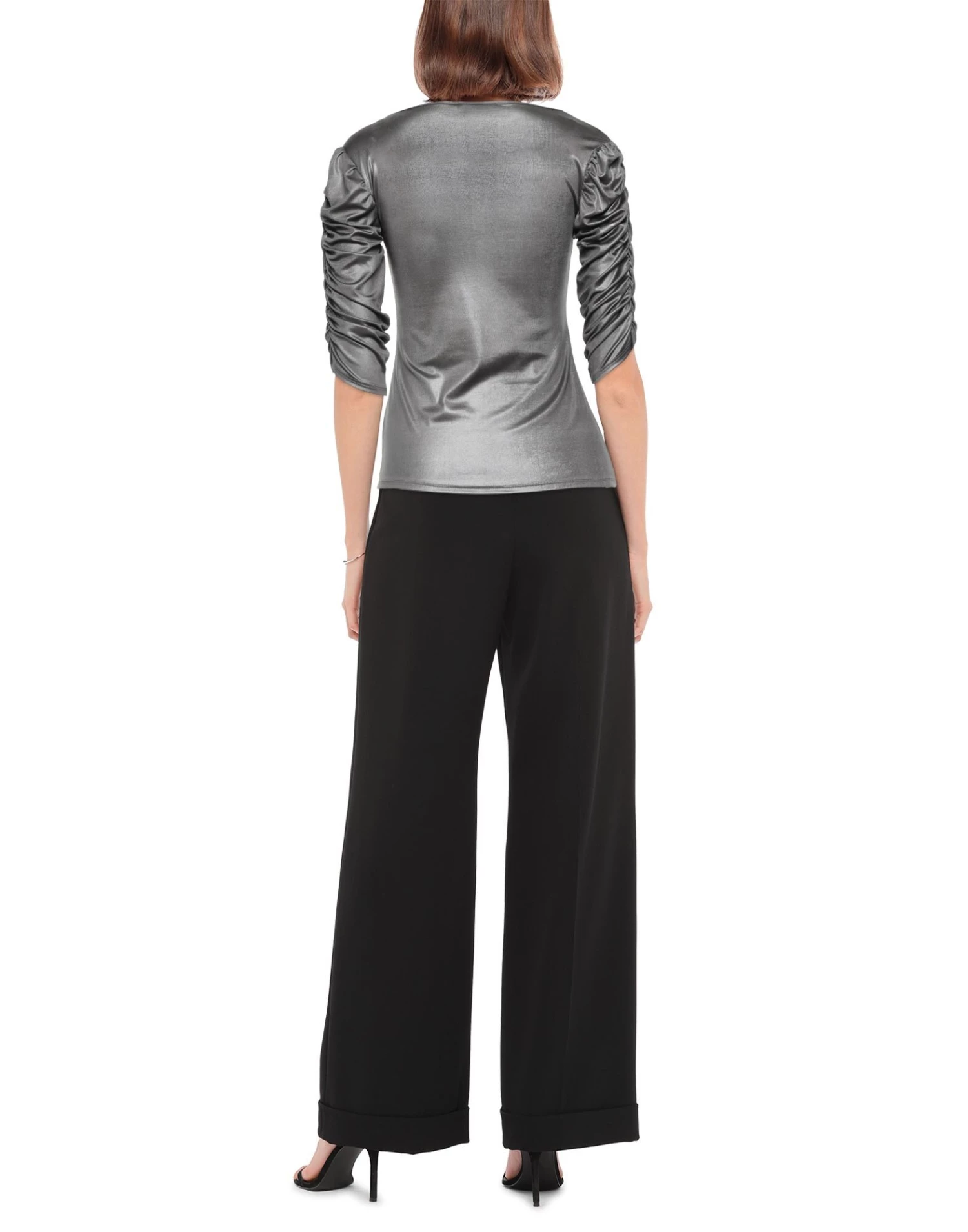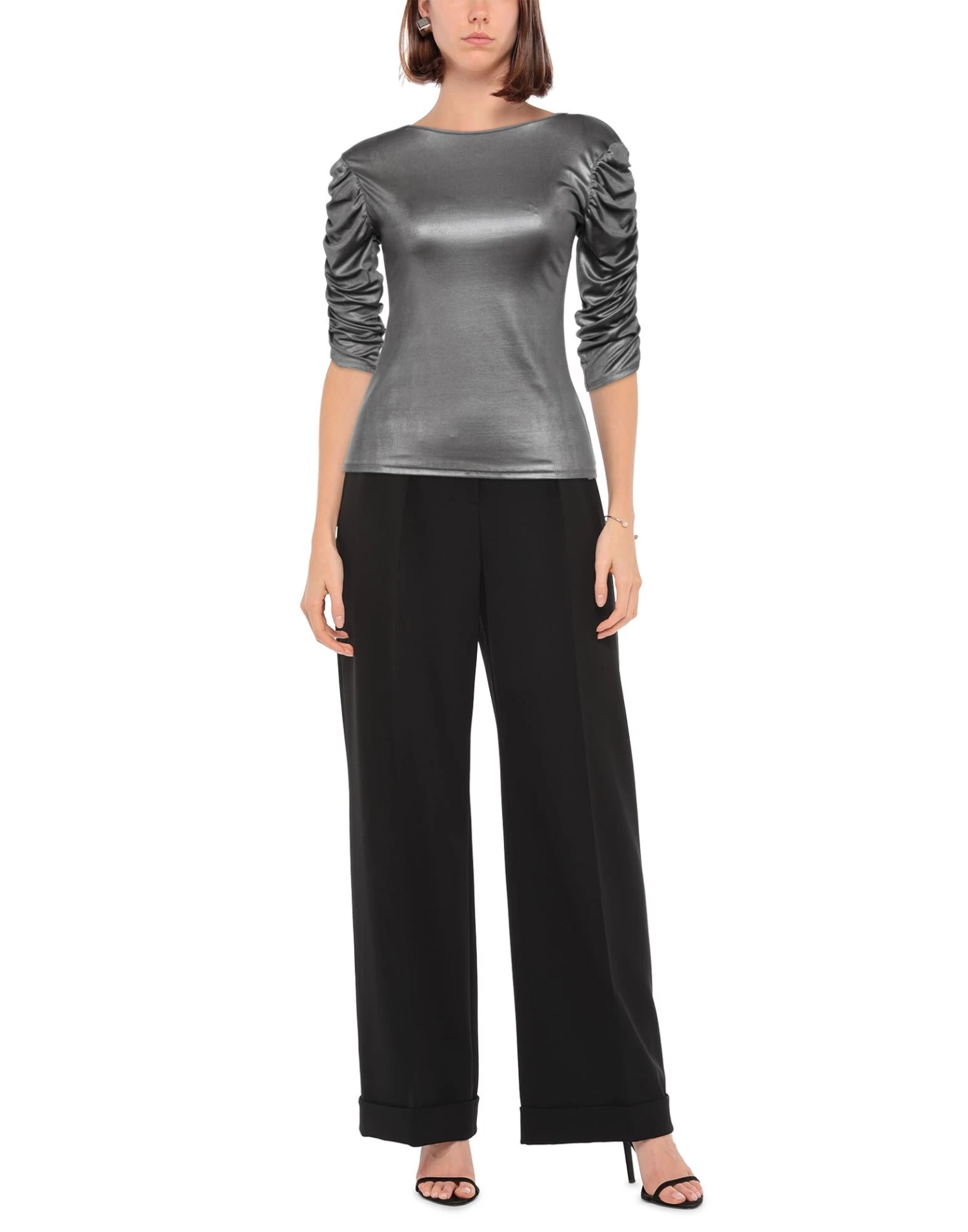 jersey, laminated effect, frills, solid color, round collar, 3/4 length sleeves, no pockets, stretch