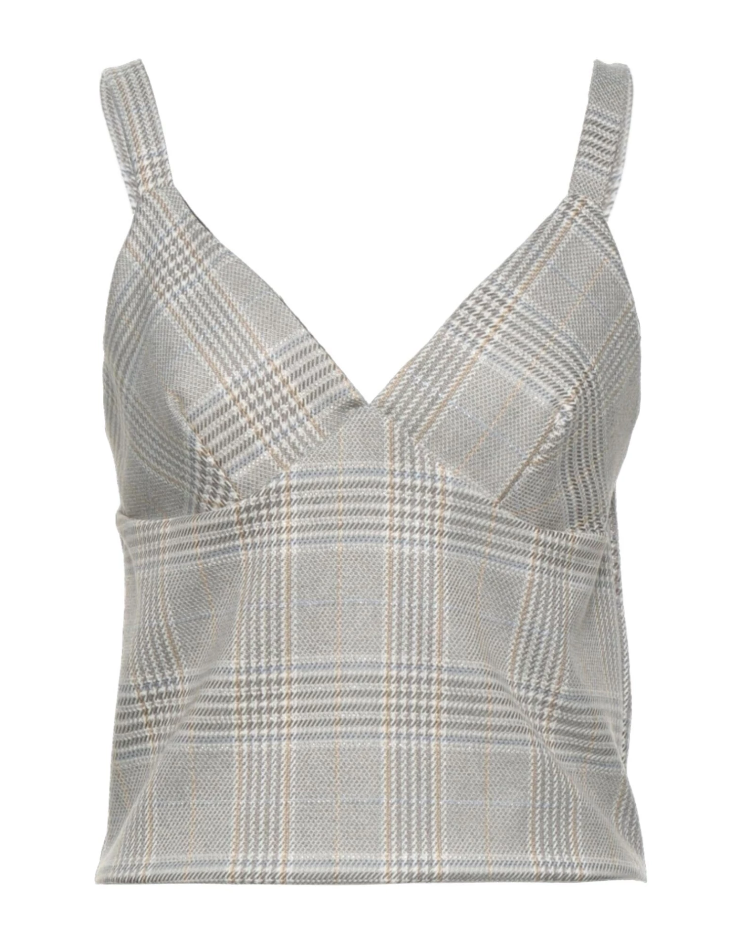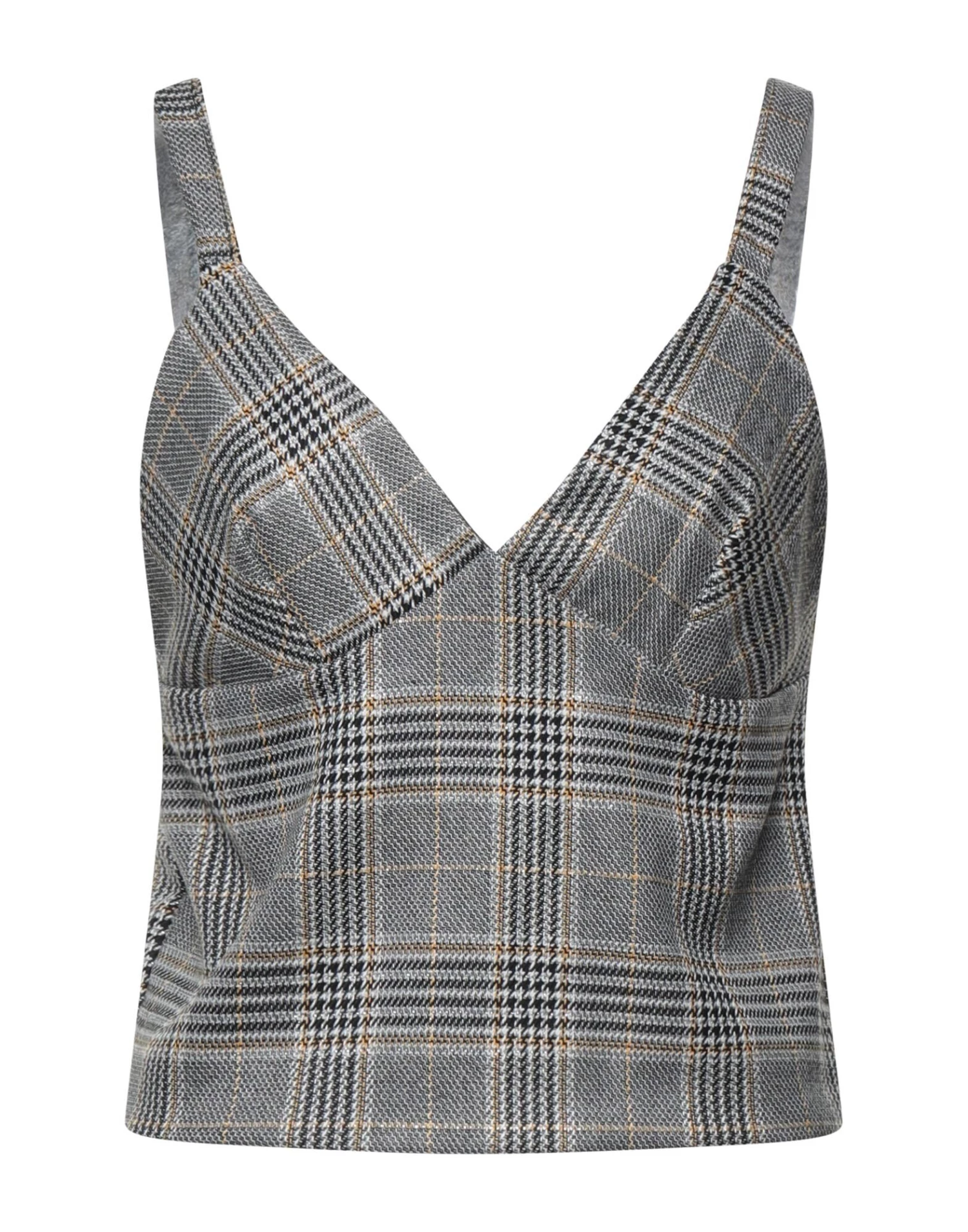 plain weave, lamé, no appliqués, glen plaid, deep neckline, sleeveless, fully lined, elasticized, stretch