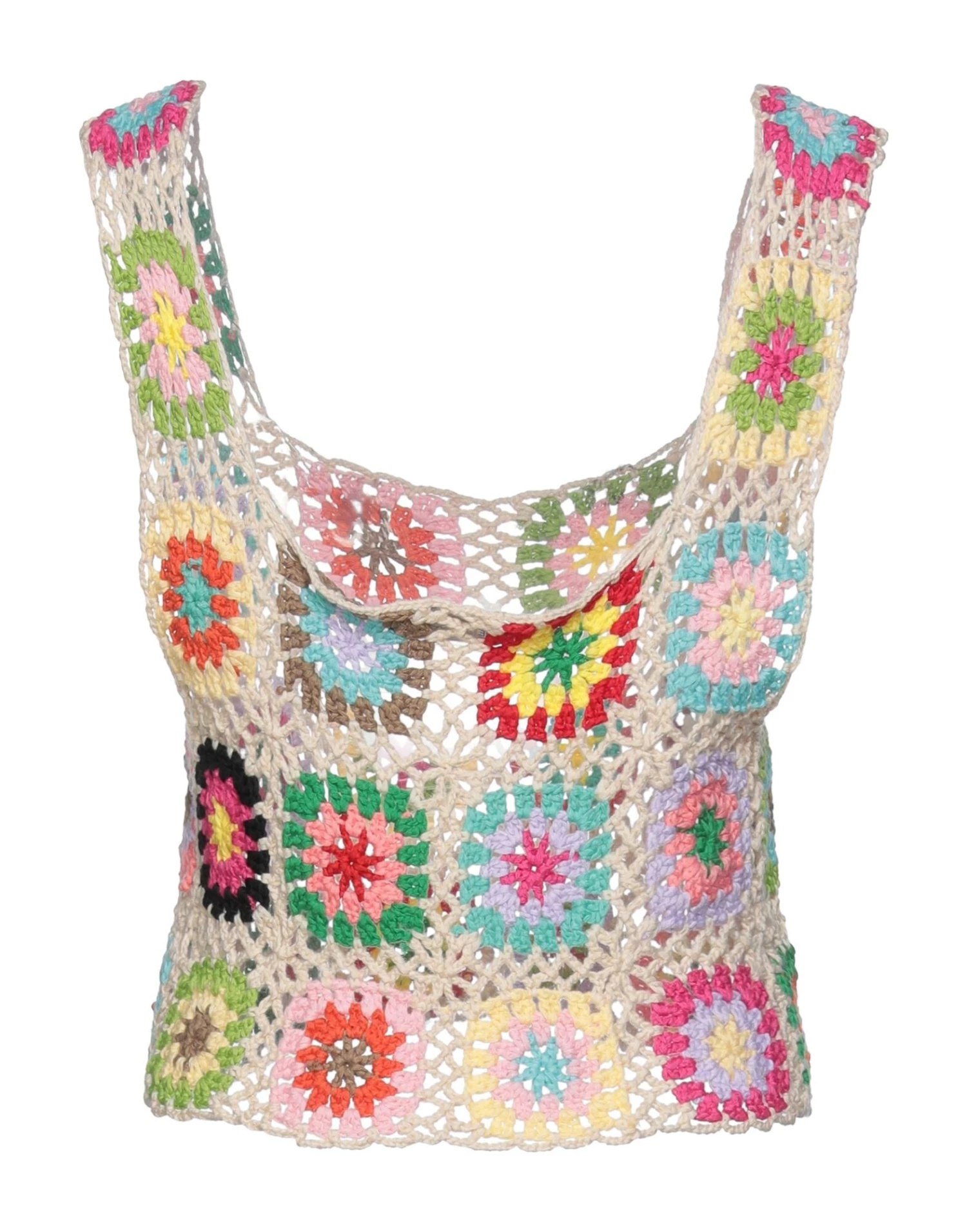 knitted, no appliqués, medium-weight knit, floral design, square neckline, sleeveless, no pockets