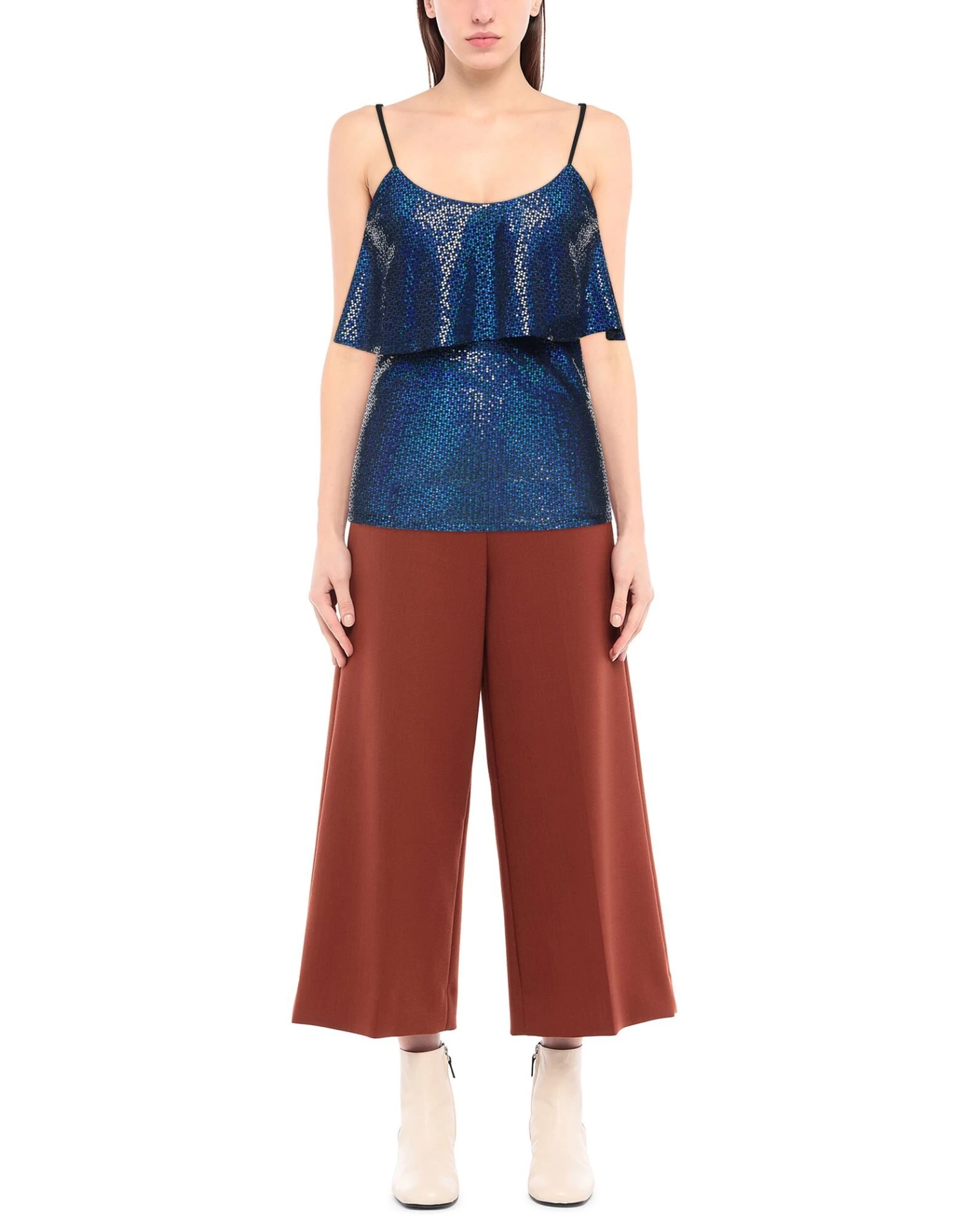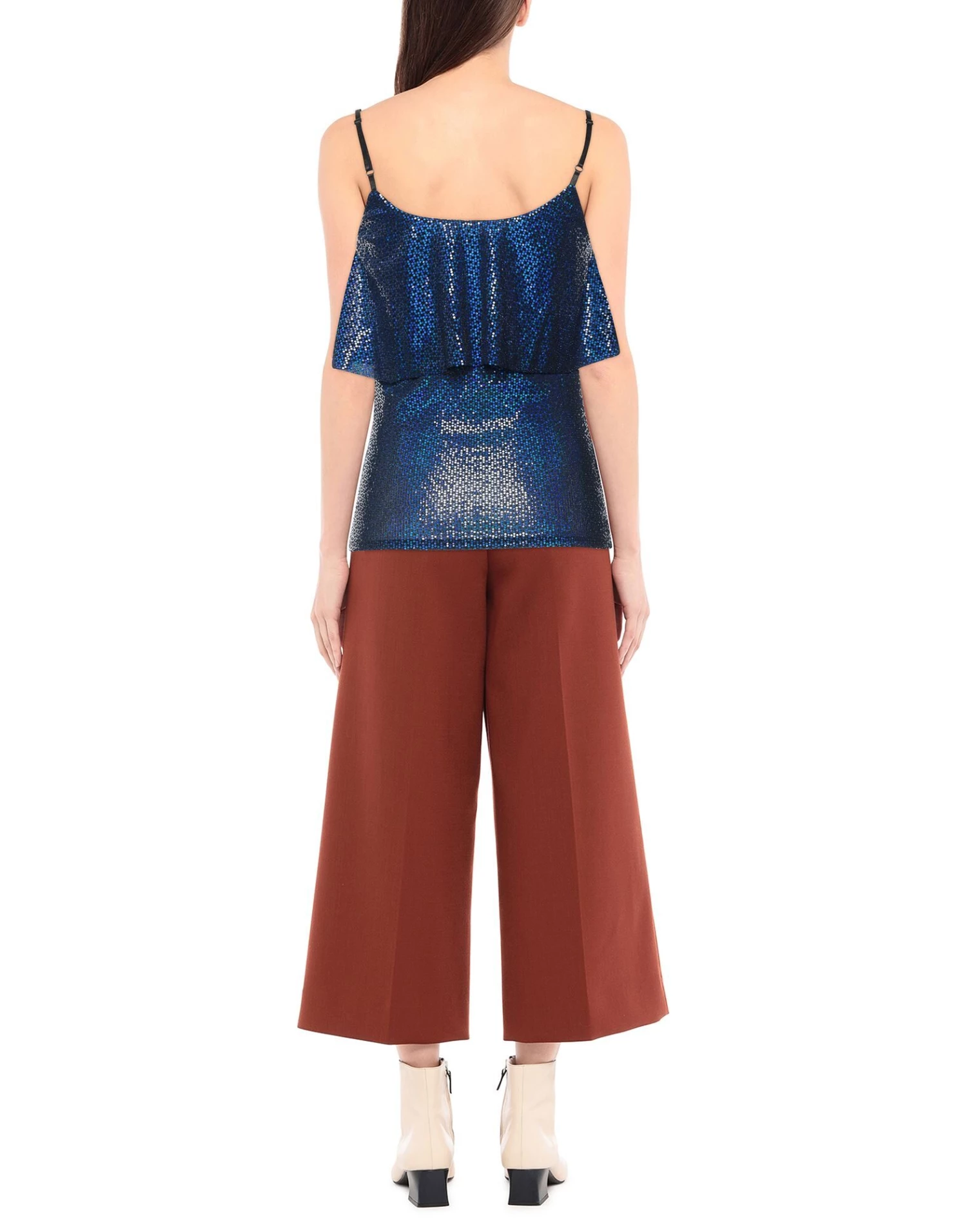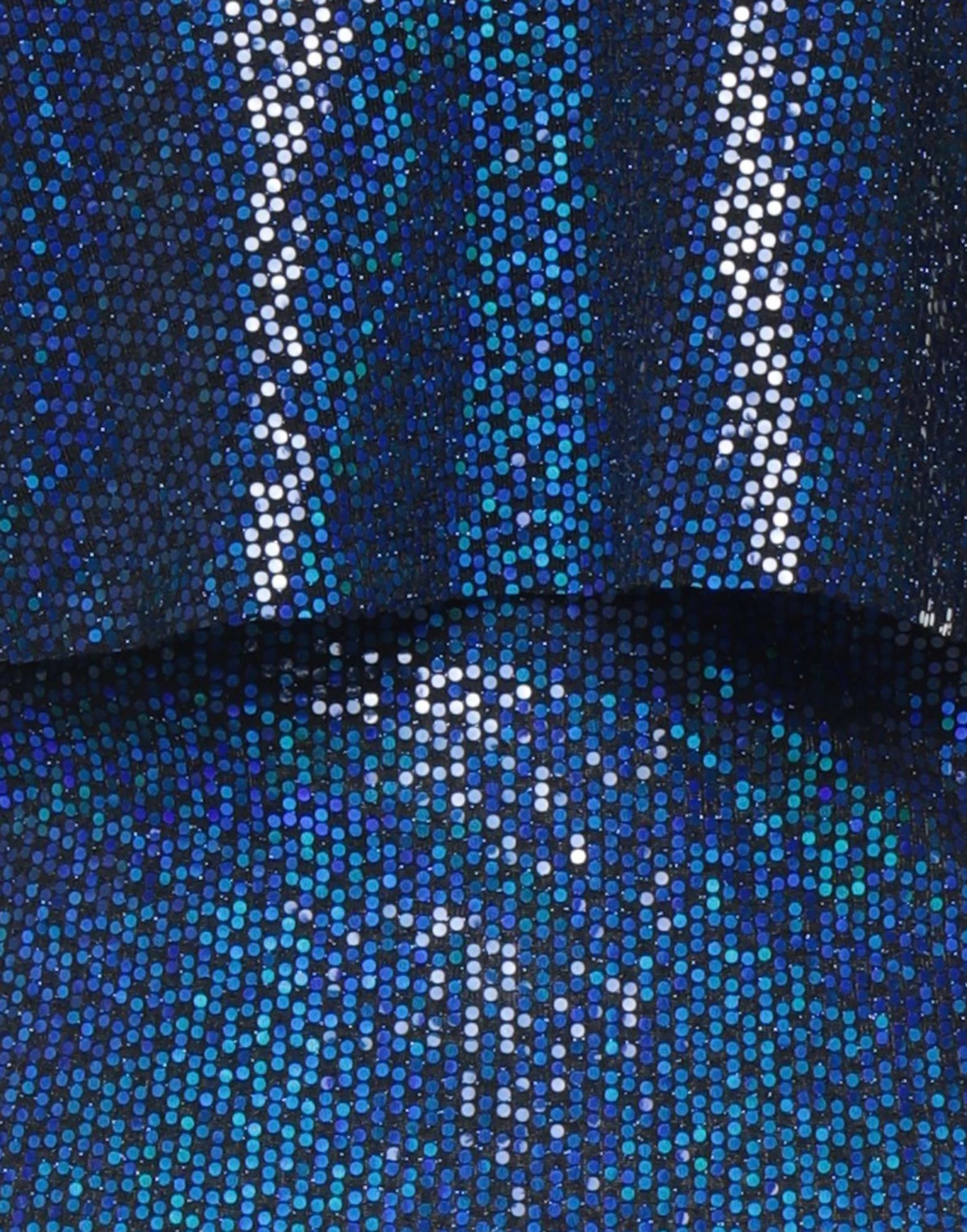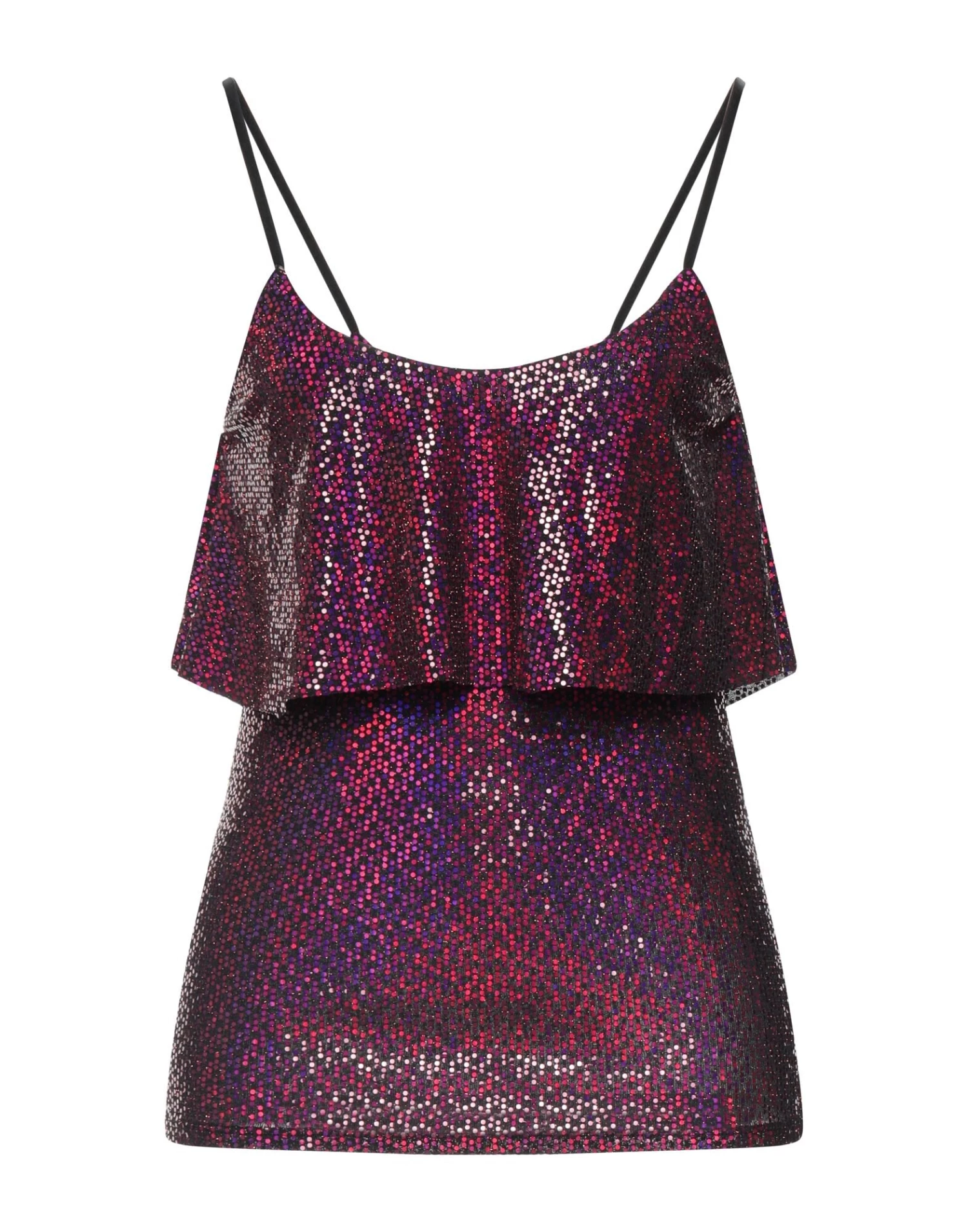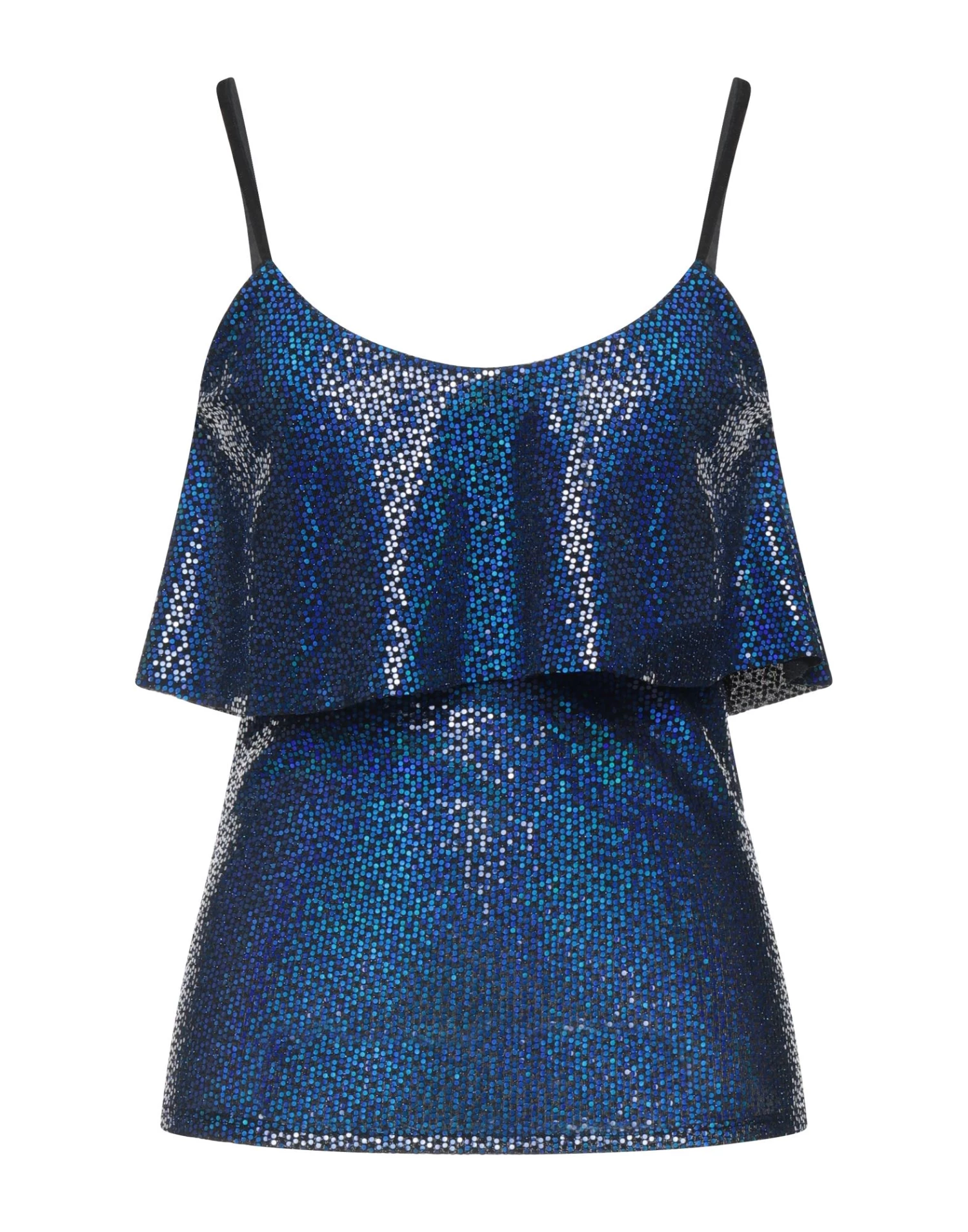 jersey, lamé, ruffles, contrasting applications, two-tone, wide neckline, sleeveless, stretch