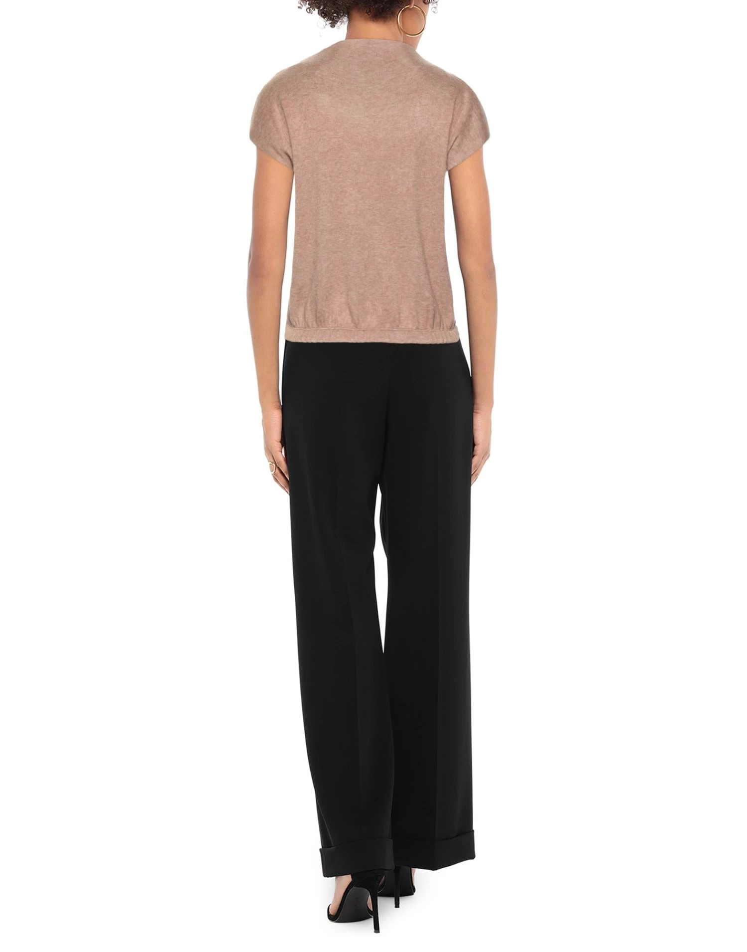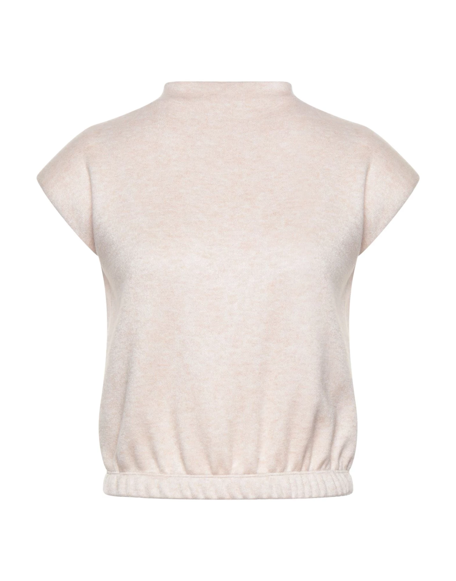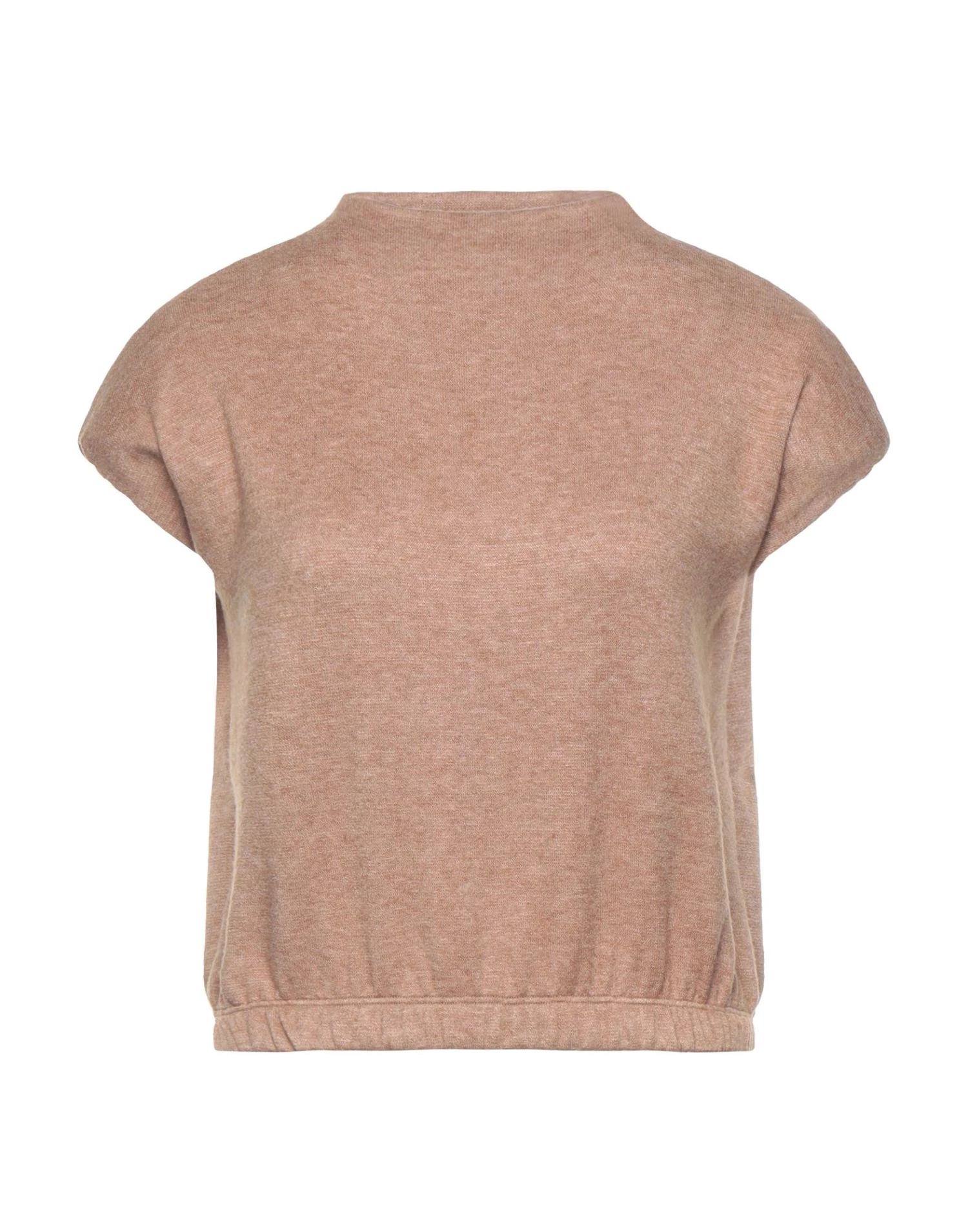knitted, medium-weight knit, no appliqués, solid color, turtleneck, short sleeves, with shoulder pad, no pockets, with elastic bottom